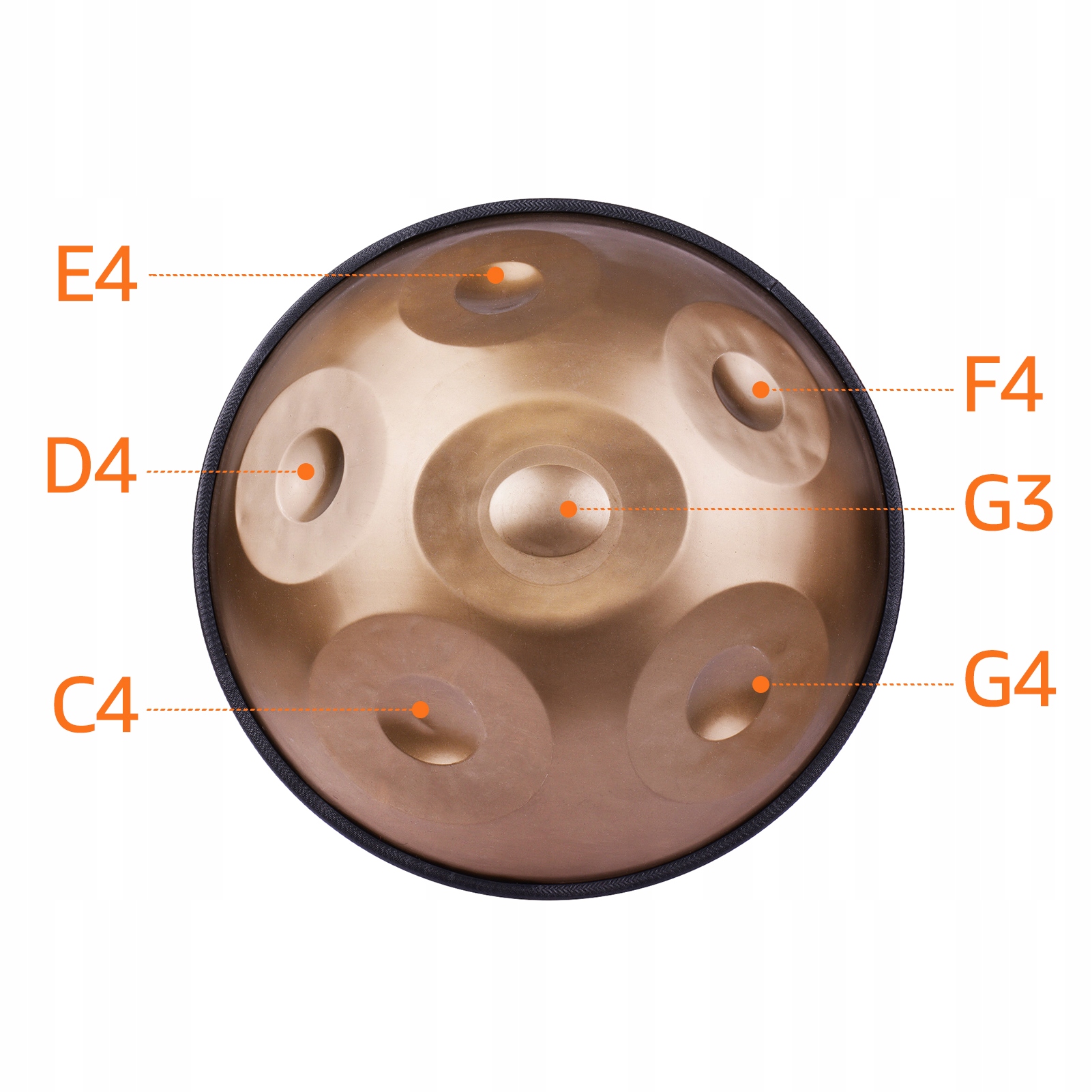 - Базовые 6 нот (A3/C4/D4/E4/F4/G4), нет необходимости в каком-либо музыкальном фоне, новички могут легко играть мелодичную музыку с этот ручной барабан.