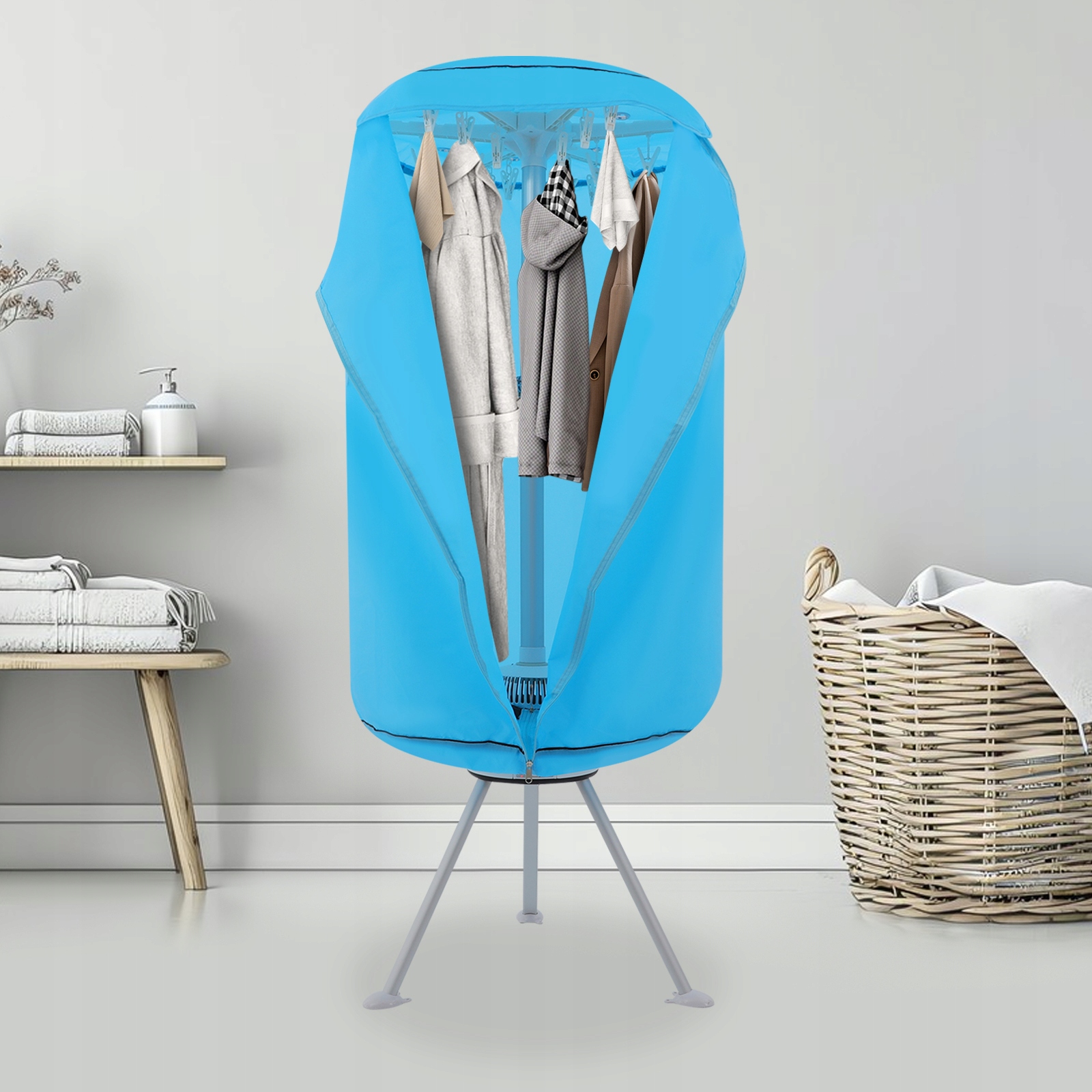 Этот продукт подходит для домов, квартир, общежитий, отелей, прачечных, в сырую, холодную погоду и т. д. Его можно использовать для сушки нижнего белья, носков, шелковой одежды, футболок, свитеров, полотенец, банных полотенец, джинсовой одежды, пальто, хлопчатобумажных курток и т. д.