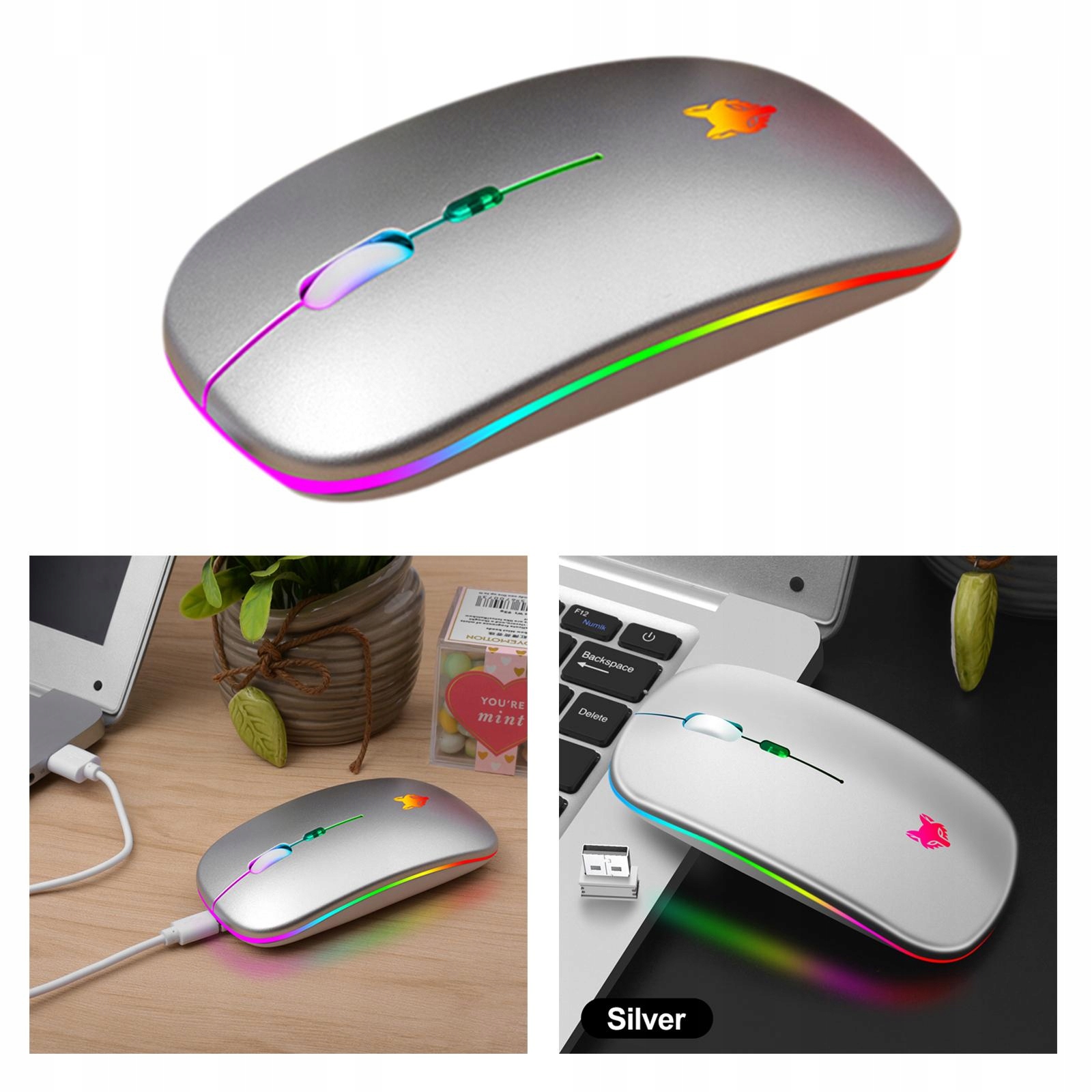 Беспроводная игровая мышь со светодиодной подсветкой, ноутбука, ПК, 2,4G, без звука, с приемником, серебристая