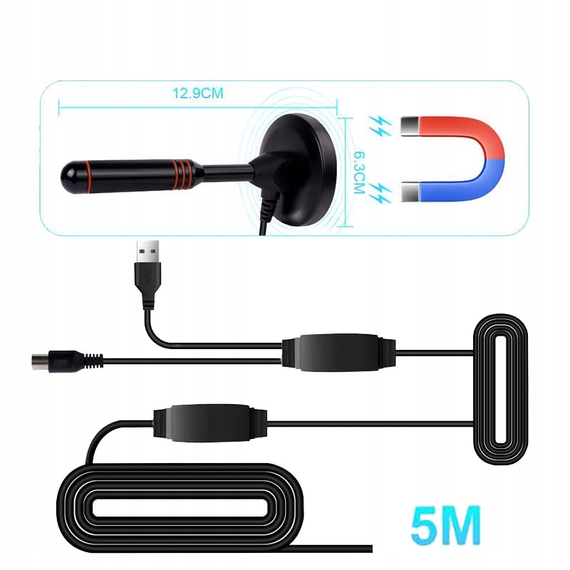 Кабель с длиной 5 м, легкое и гибкое позиционирование для лучшего приема.