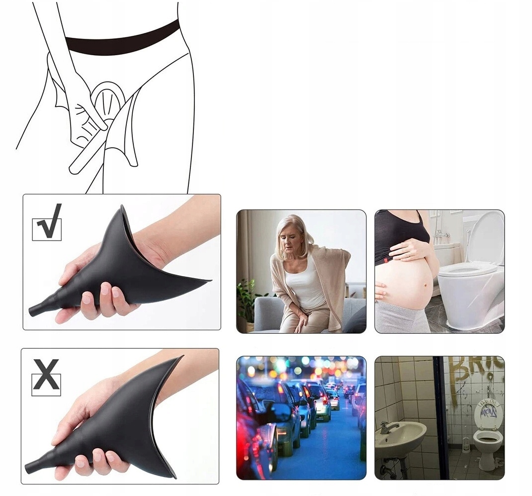 Подходит для женщин для использования на открытом воздухе, например, в походе, путешествии, беге, пешем туризме, катании на каяках, езде на велосипеде или в пробках. Также подходит для женщин, которые не могут приседать и мочиться из-за беременности или травмы.