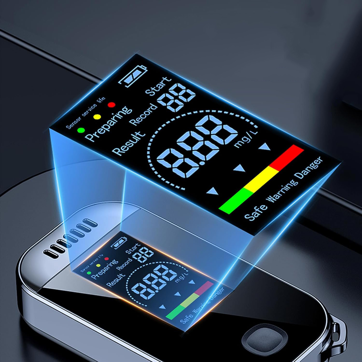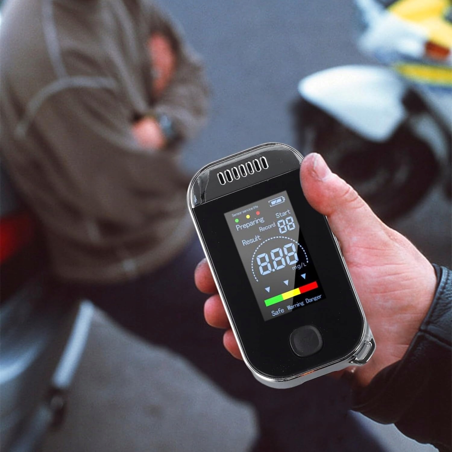 🍻🍻🍻【Бесконтактный тестер алкоголя】Тест продувкой воздухом, бесконтактный, гигиеничный и надежный. Трехцветный блок и цифровой дисплей интуитивно отображают результаты теста на алкоголь. На цифровом дисплее отображается зеленый цвет — отсутствие алкоголя, и красный — вождение в нетрезвом виде.