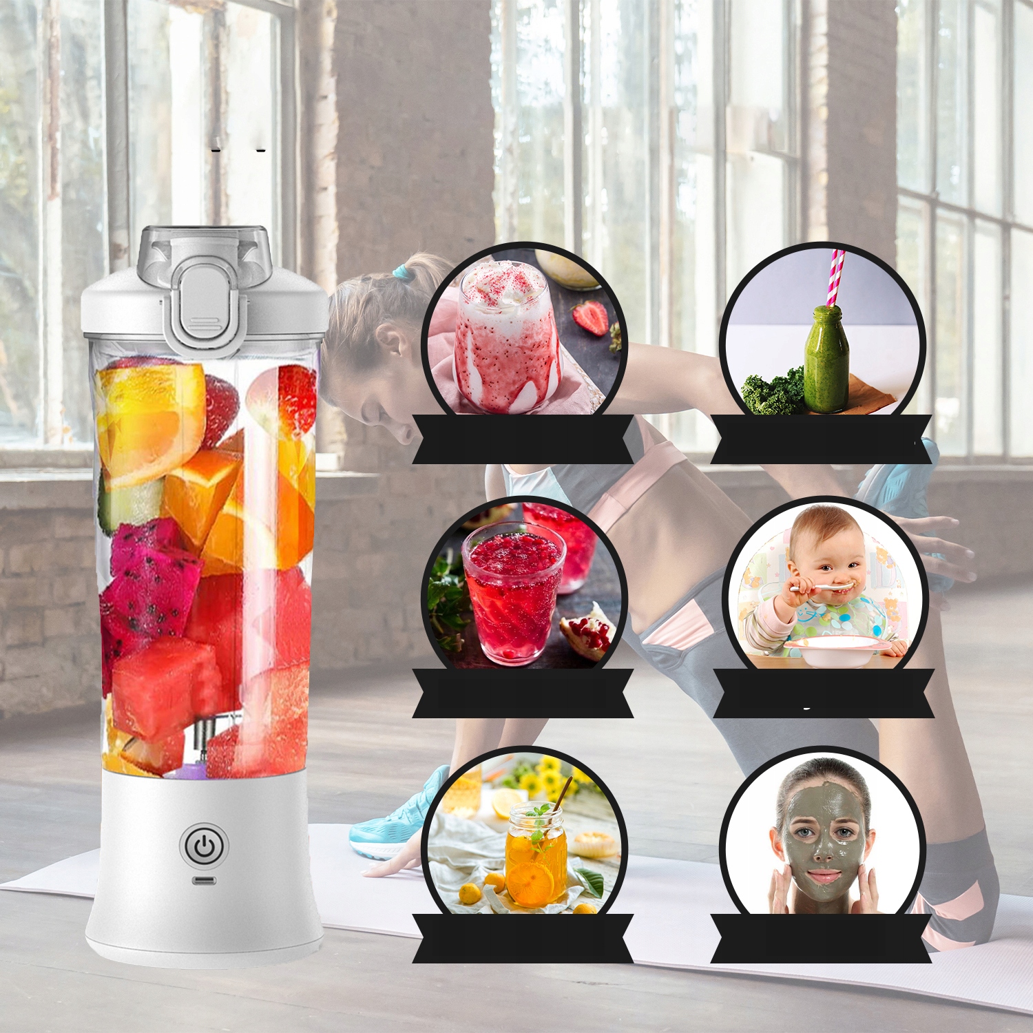 Портативный блендер для фруктов 600 мл, чашка для путешествий сока с аккумулятором