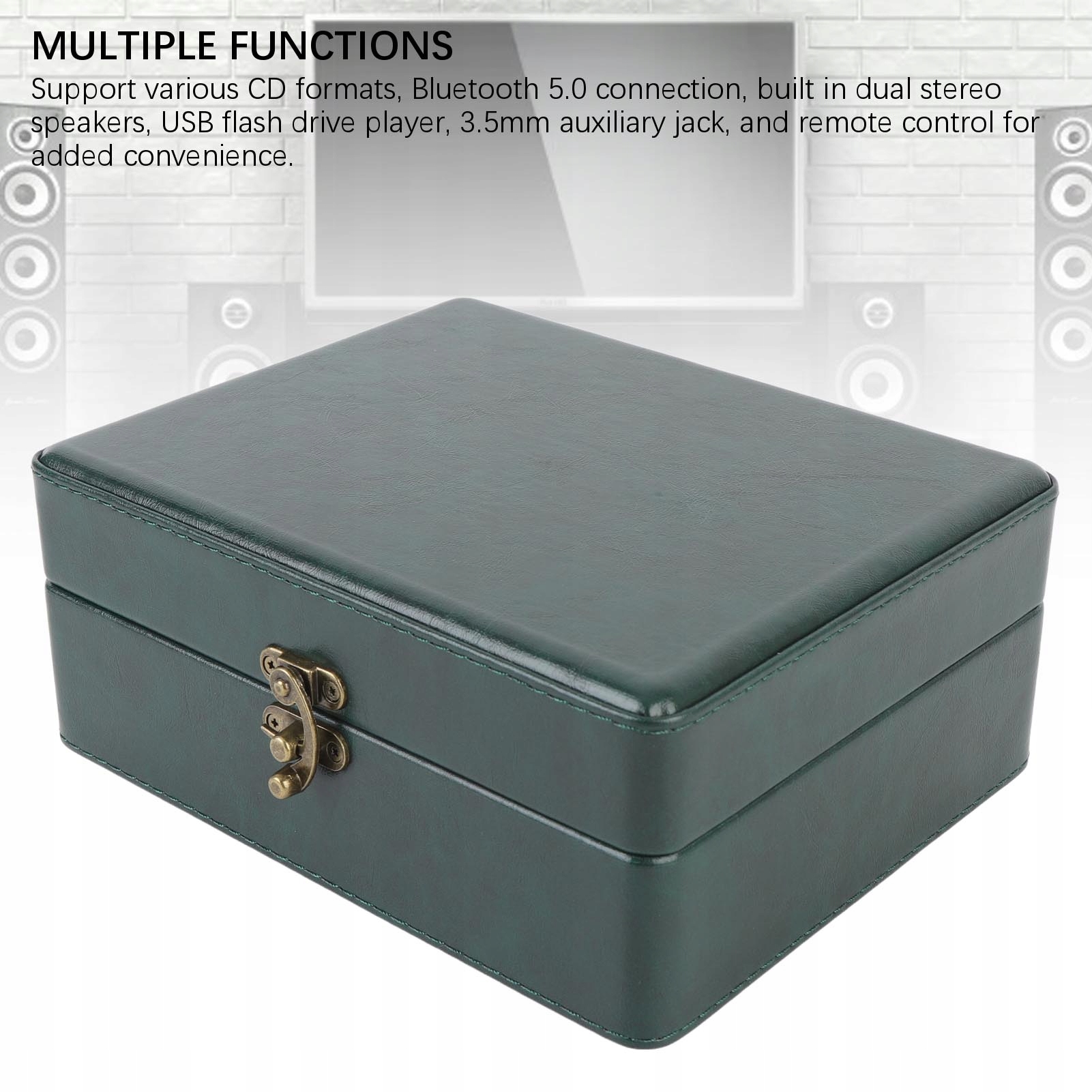 2. Множество функций: поддержка различных форматов компакт-дисков, соединение Bluetooth 5.0, встроенные двойные стереодинамики, USB-накопитель, вспомогательный подъемник 3,5 мм и пульт дистанционного управления для дополнительного удобства.