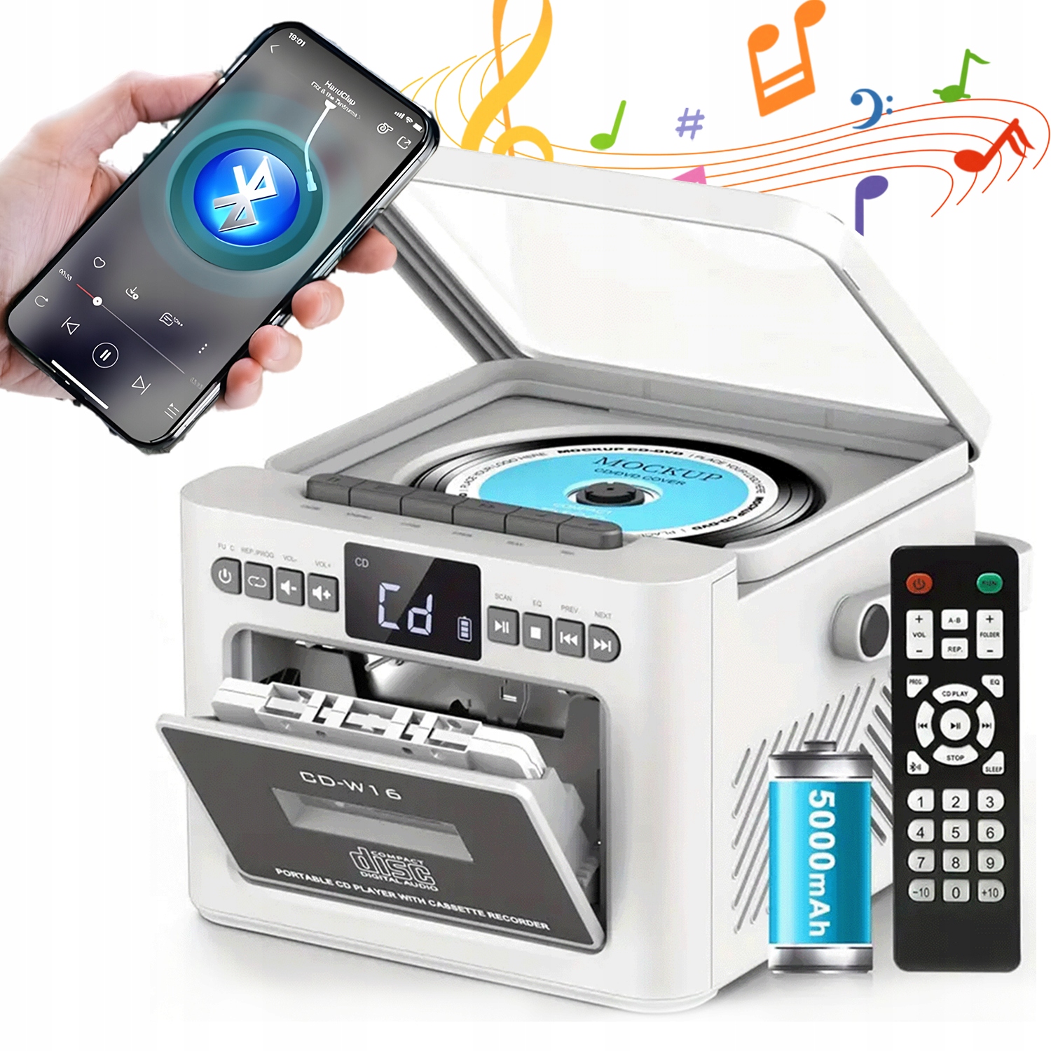 ПОРТАТИВНЫЙ CD-ПЛЕЕР КАССЕТНЫЙ ДИНАМИК BLUETOOTH РАДИО FM USB SD AUX CD-W16