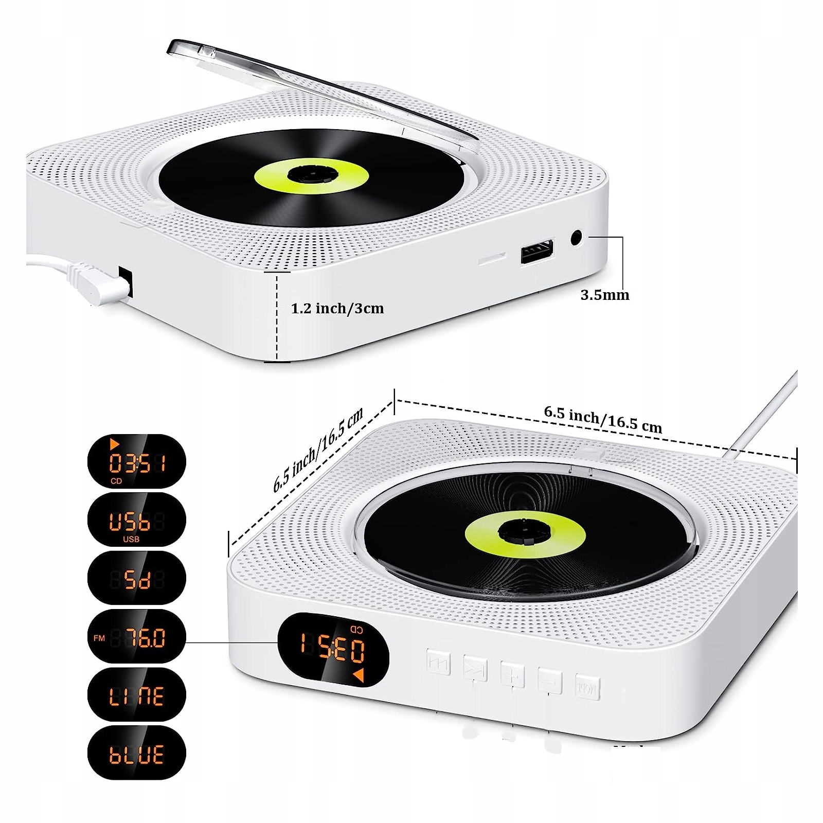 ПОРТАТИВНИЙ CD-ПЛЕЄР НАСТІННИЙ BLUETOOTH КОЛОНКА FM-РАДІО БІЛИЙ