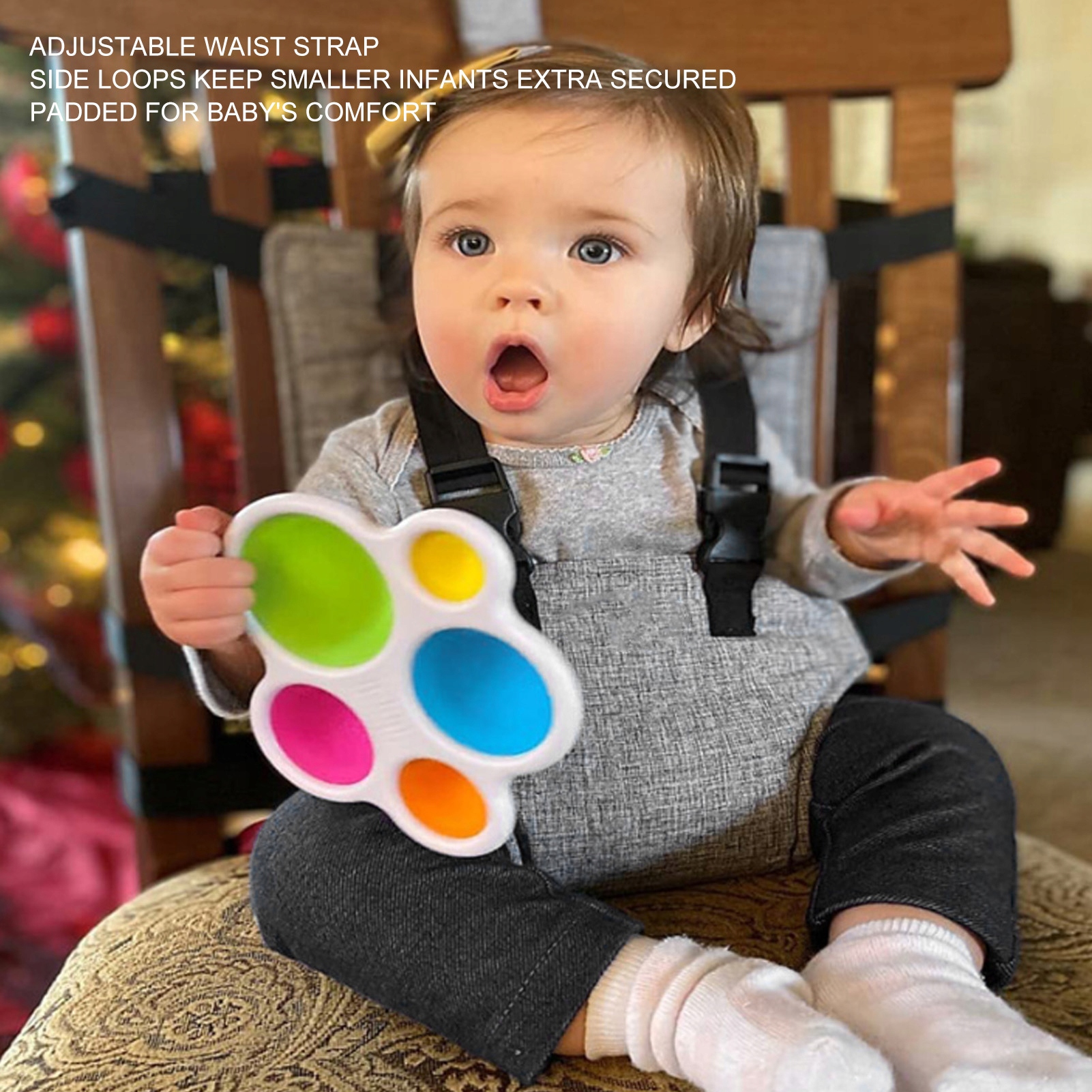 5. Универсальная посадка: регулируемые ремни на спине позволяют портативному стульчику подходить к широкому спектру стульев, как высоких, так и широких. Подходит для стула любой высоты со спинкой шириной до 21 дюйма.