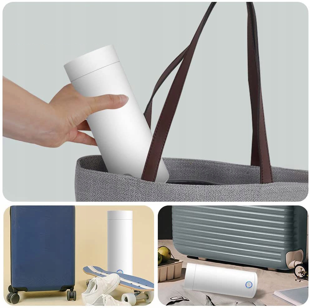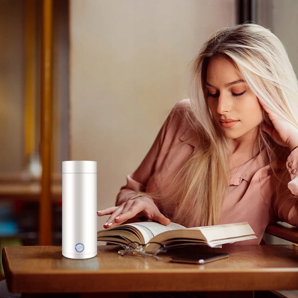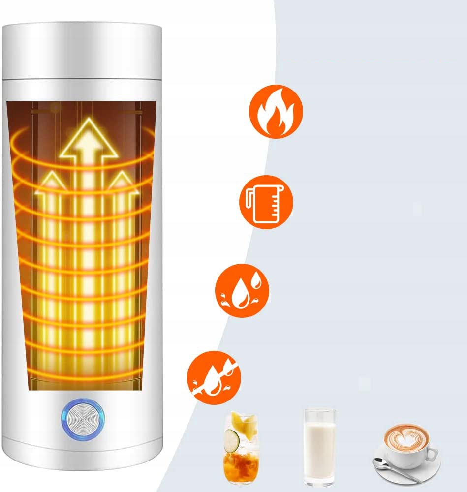 - [Маленький портативный электрический чайник 3 в 1] --- Портативный электрический чайник объединяет в себе чайник, термос и чашку для воды. Это позволяет приобрести использованные бутылки для воды по более низкой цене. Отлично подходит для путешествий, работы, путешествий, кемпинга или повседневного ношения. Идеальный подарок для друзей, которым нравится горячая вода/кофе/нужно приготовить сухое молоко.