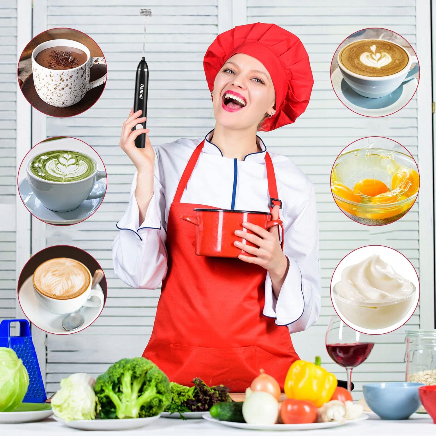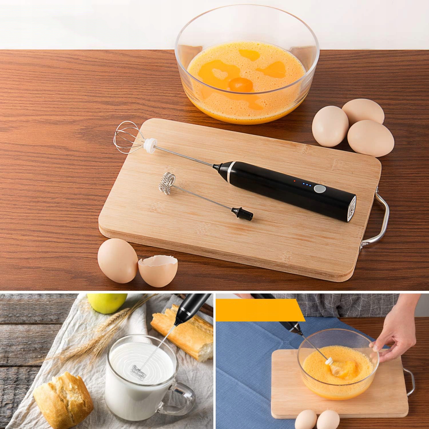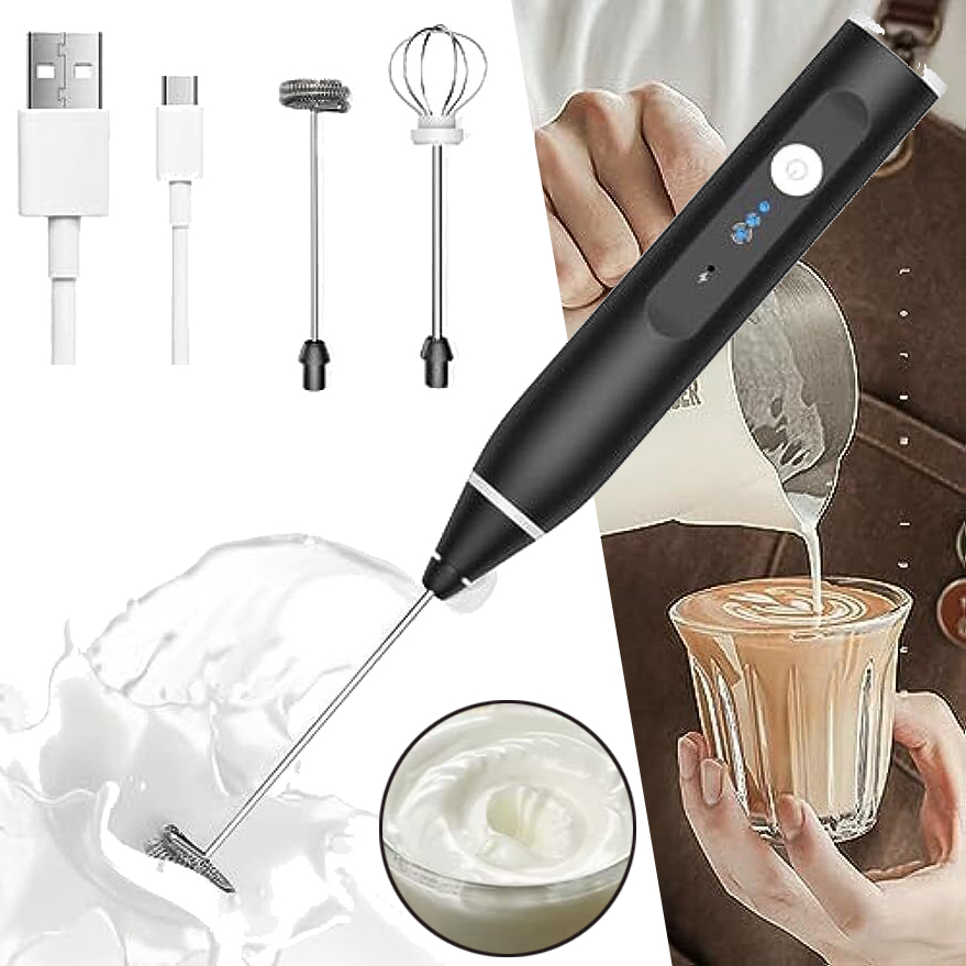 ☕☕ Многофункциональный электрический венчик:Электрический вспениватель молока с двойным венчиком оснащен двумя высококачественными, безопасными для пищевых продуктов нержавеющей стали. венчики. Один из них идеально подходит для кофе, латте, капучино, горячего шоколада и безалкогольных напитков, придавая вашим напиткам профессиональный вид. Второй идеально подходит для взбивания яиц и является отличным помощником на кухне.