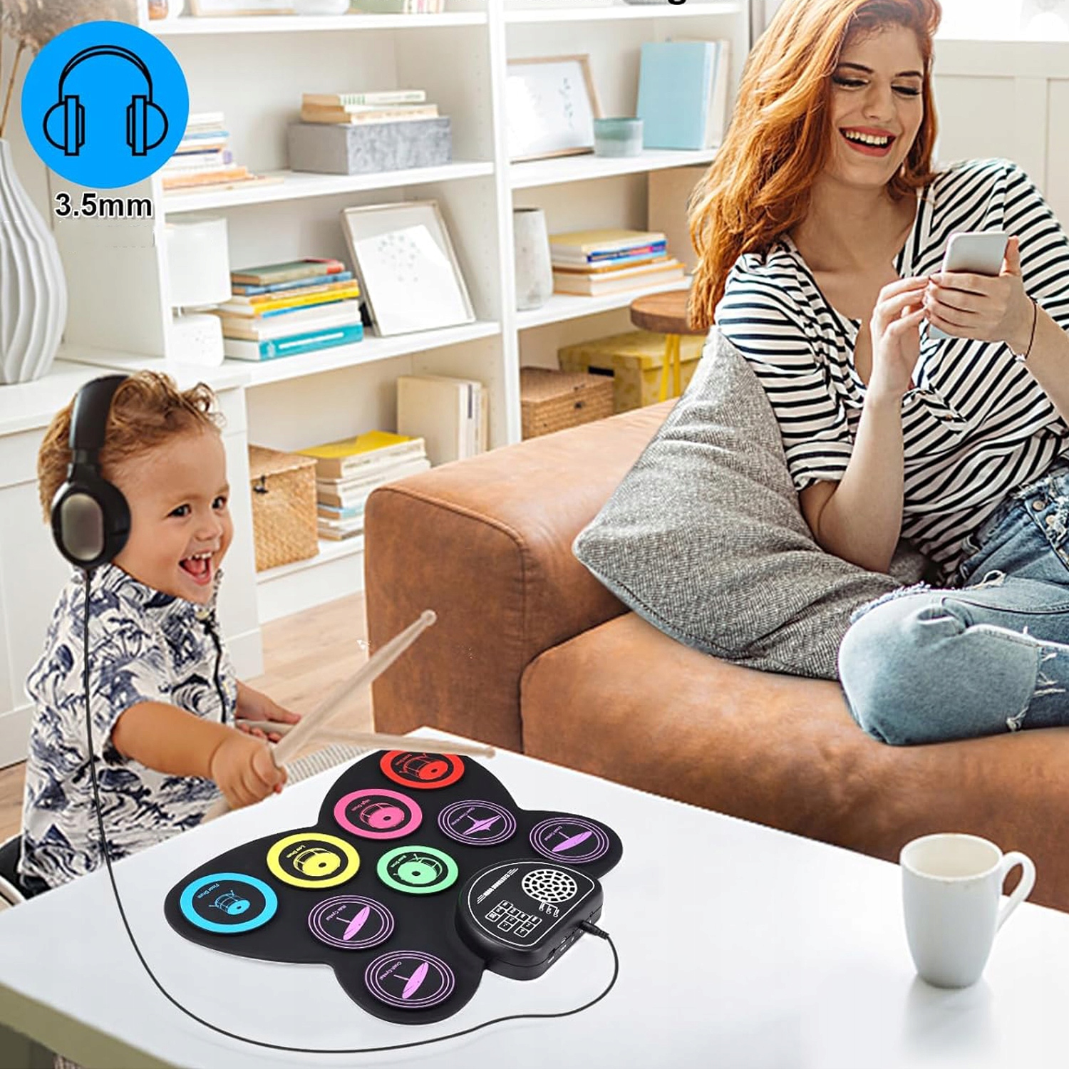 🥁【Практикуйте игру на барабанах приватно】Этот электронный барабанный пэд поддерживает выход для наушников 3,5 мм, поэтому вы можете погружайте упражнения, чтобы не беспокоить соседей. 7 тембров, 10 демо и 9 ритмов опционально для разных музыкальных стилей. Функция записи позволяет записывать до 800 ударов и совершенствовать свои навыки игры на барабанах во время каждой тренировки.