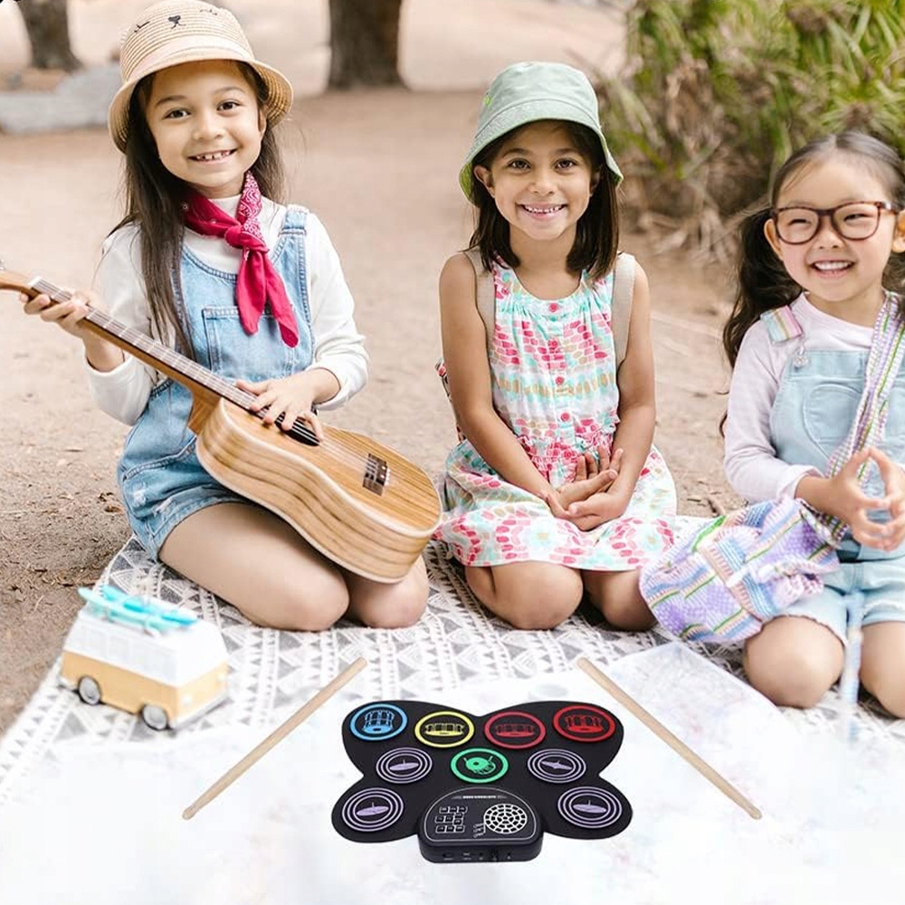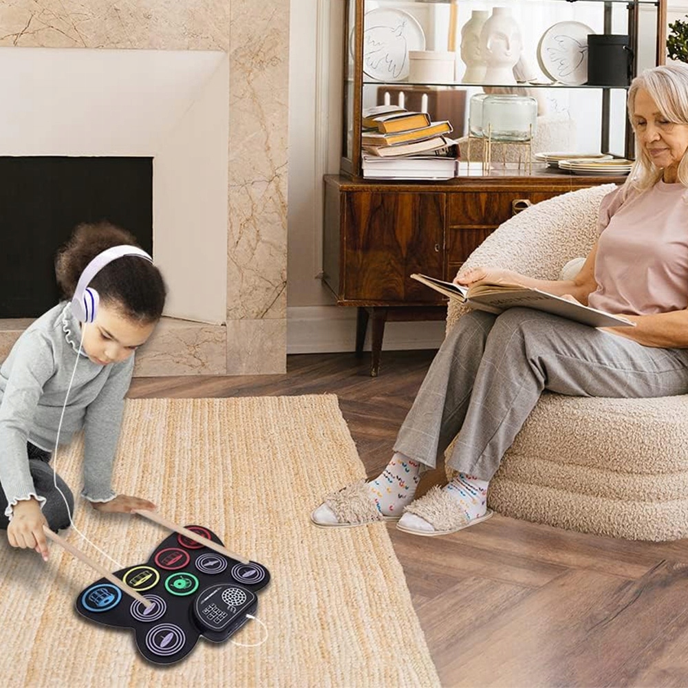🎁【Идеальный подарок для детей и начинающих музыкантов】Складная барабанная установка с 9 клавишами из высококачественного мягкого силикона, который облегчает хранение и переноску. Идеальный подарок ребенку или другу на день рождения, Рождество, Хэллоуин или другой особенный праздник.