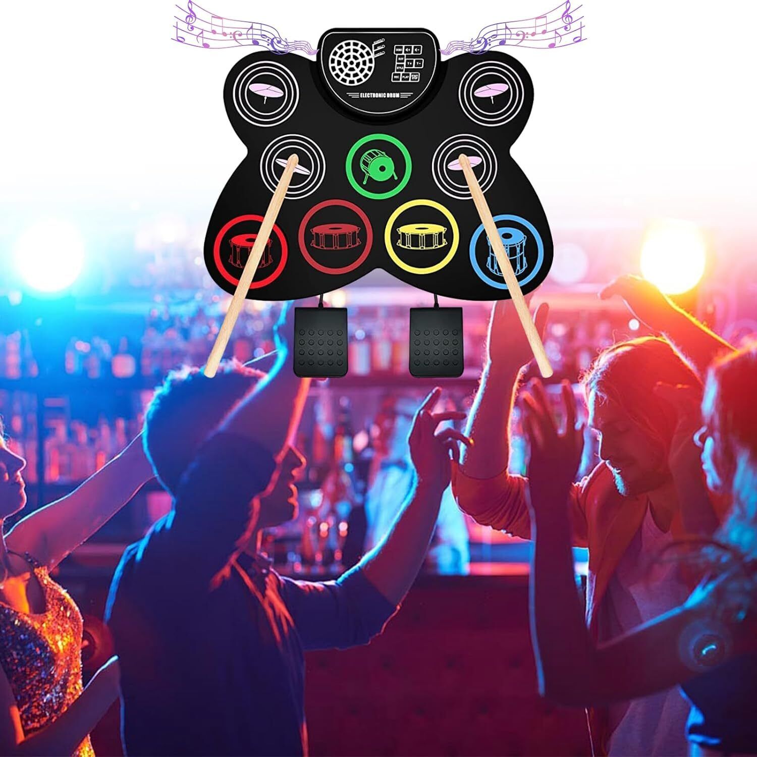 🥁【Портативный】 Встроенный аккумулятор емкостью 1200 мАч обеспечивает до десяти часов игры без подзарядки. Изготовленная из прочного силикона, ударная установка легко сворачивается и удобно переносится куда угодно.