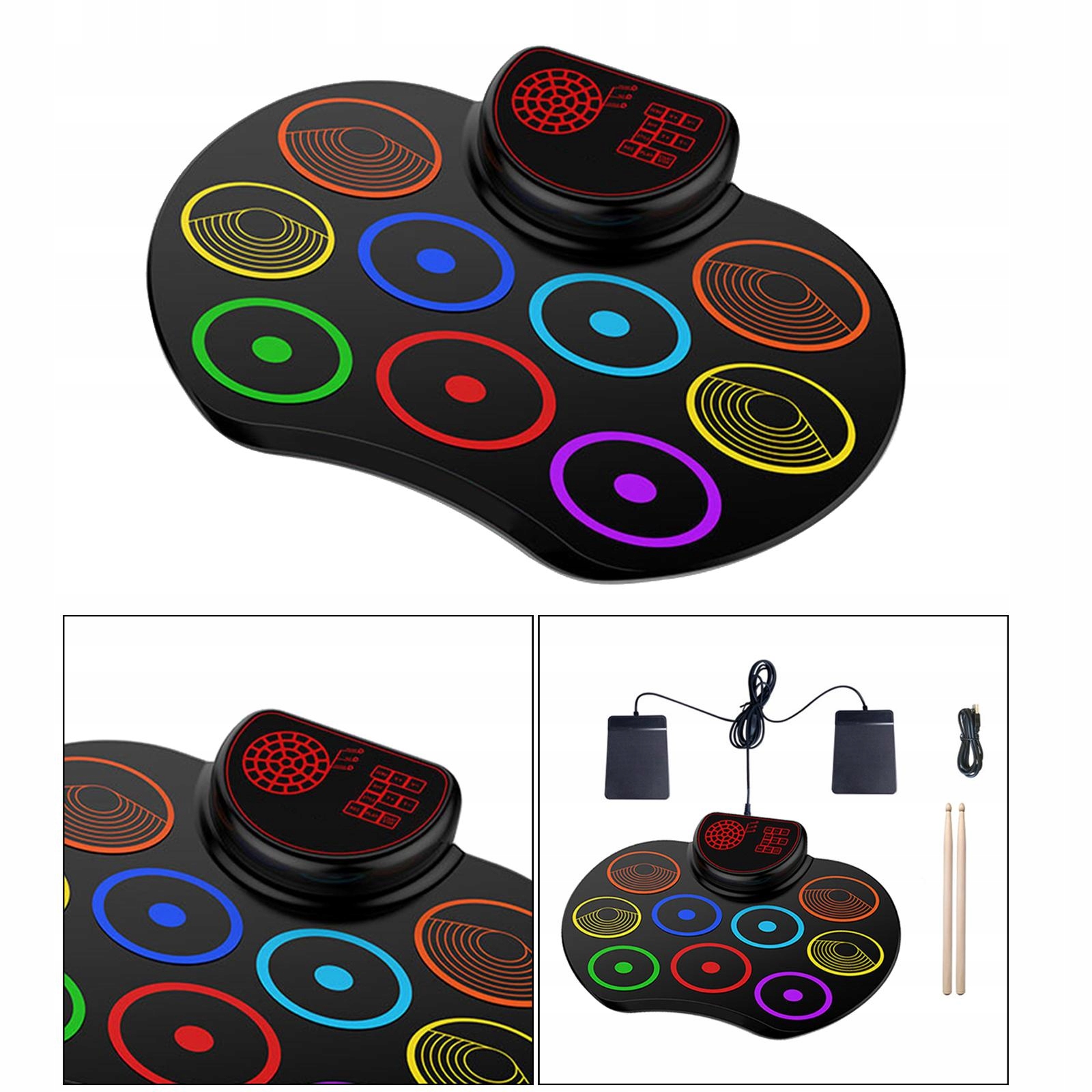 Портативный электронный барабан с 9 силиконовыми барабанными прокладками, включая объемные барабаны (3)/Snare/Bass, Hat/Crash (2)/ездовые пластины, создание звуков и моделирование реального грохота.
