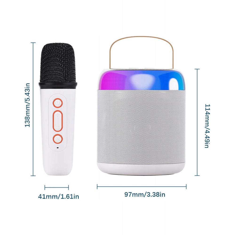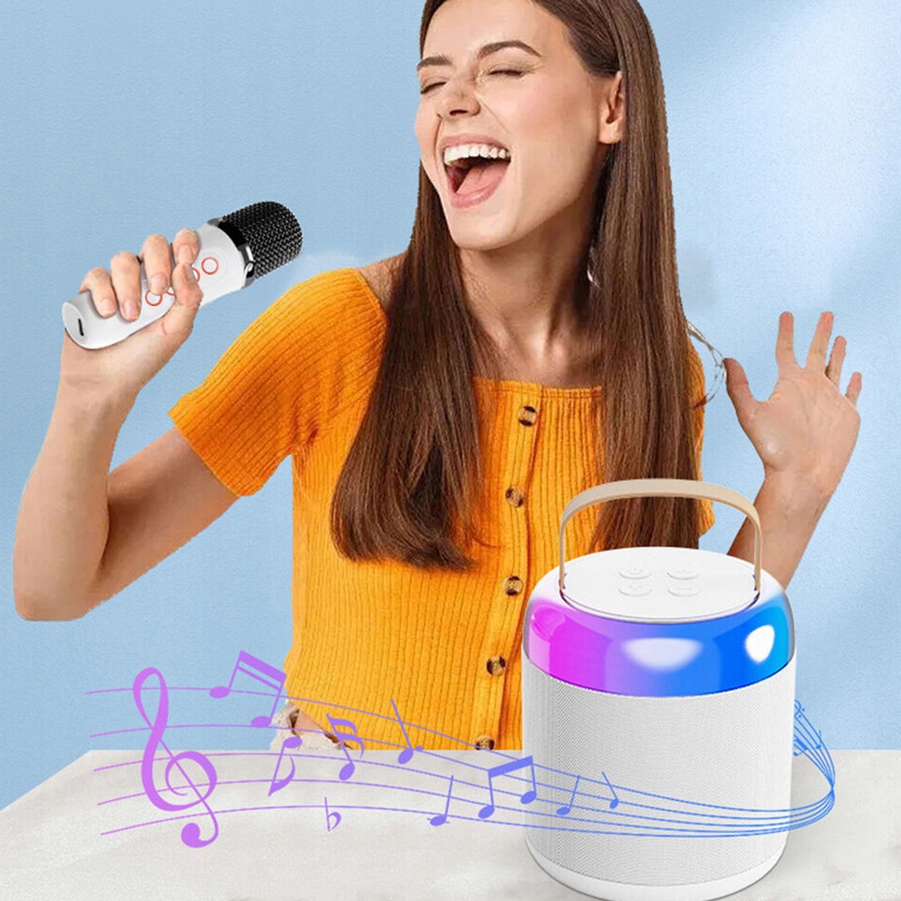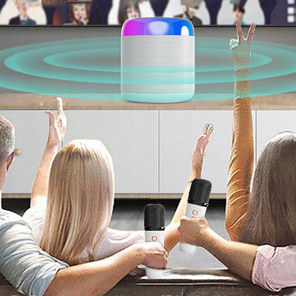 - Портативный динамик Bluetooth и 2 беспроводные микрофоны оснащены высокопроизводительным аудио контроллерами и передовыми процессорами цифровых сигналов, благодаря тому, что звук более четкий и обеспечивает идеальное произведение во время Пение. Музыка! Они удовлетворят все ваши потребности, связанные с «радостным пением». Светодиодные огни танцуют на ритм музыки, создавая счастливую атмосферу. Компактный размер облегчает перемещение Возраст