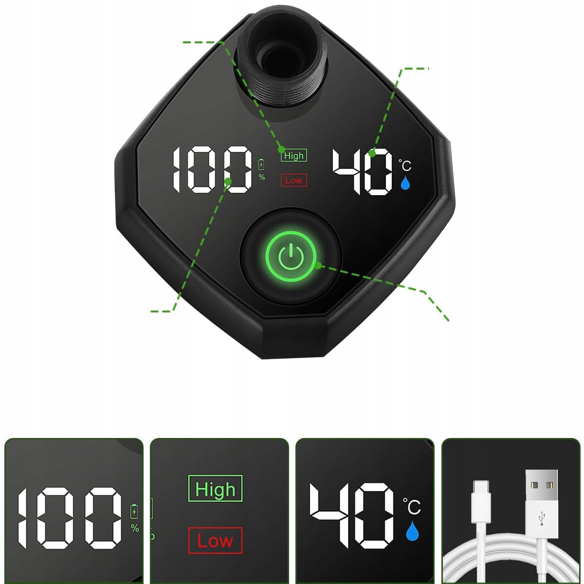Интеллектуальный цифровой дисплей, переключаемые передачи: Индикатор питания и индикатор температуры реального времени. Лампа управления передач помогает переключаться между высокими и низкими передачами. Красный свет указывает на высокую и высокую эффективность воды. Зеленый свет указывает на низкую передачу и низкие выбросы воды. Совет: Нет функции отопления.