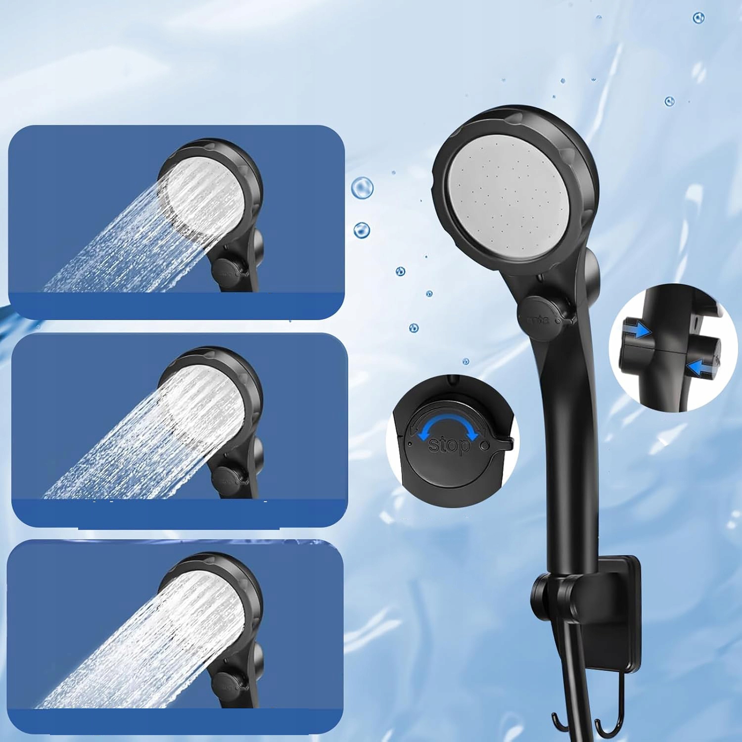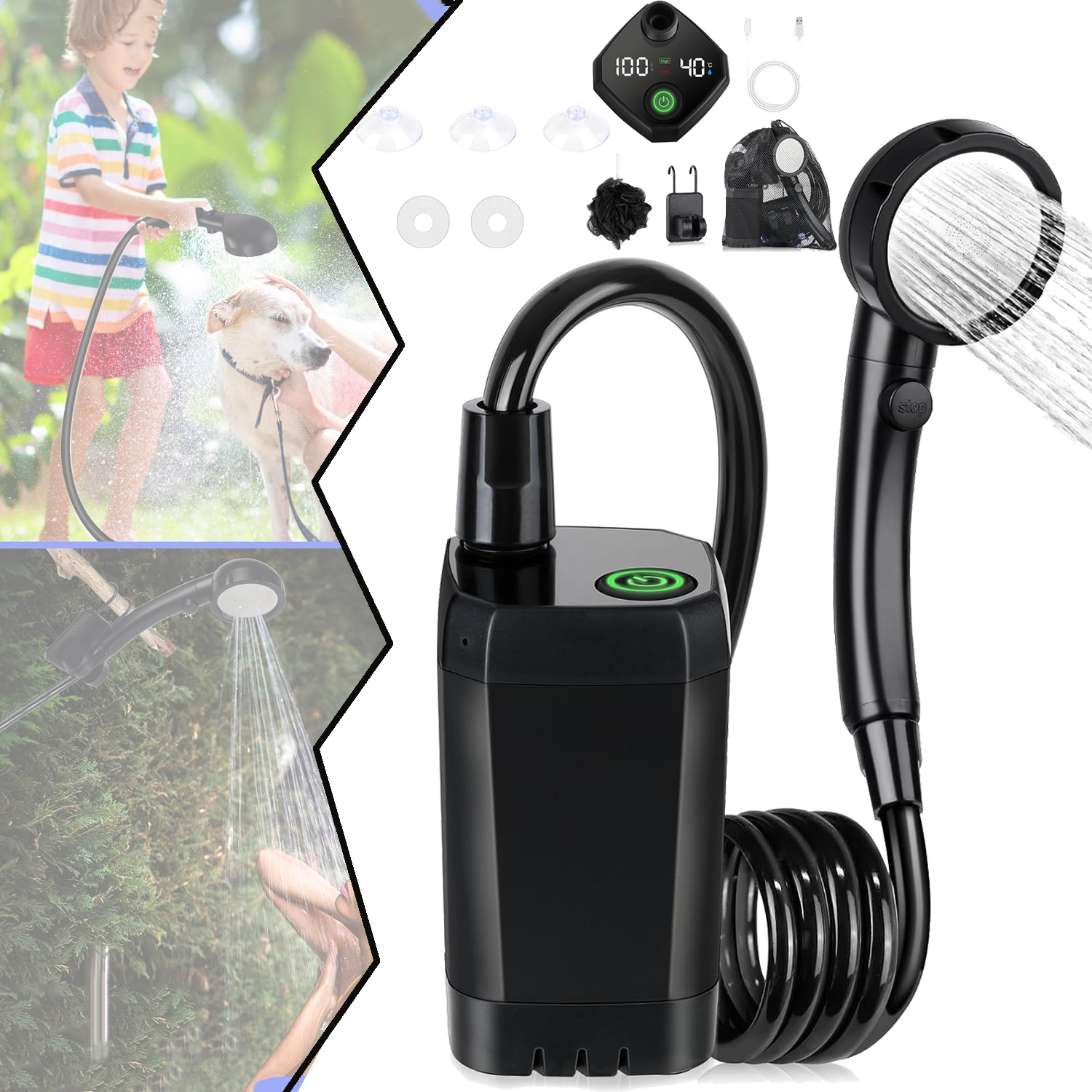 Легкая сборка и эксплуатация: душ для кемпинга очень прост в использовании. Чтобы запустить насос, удерживайте выключатель на аккумуляторе более 3 секунд. Оснащенный 4 режимами насадки для душа и выключателем для остановки воды, вы можете легко переключаться между различными режимами, вращая ручку на панели для головки душа. Кемпинг -душ обеспечивает тонкий, приятный поток воды