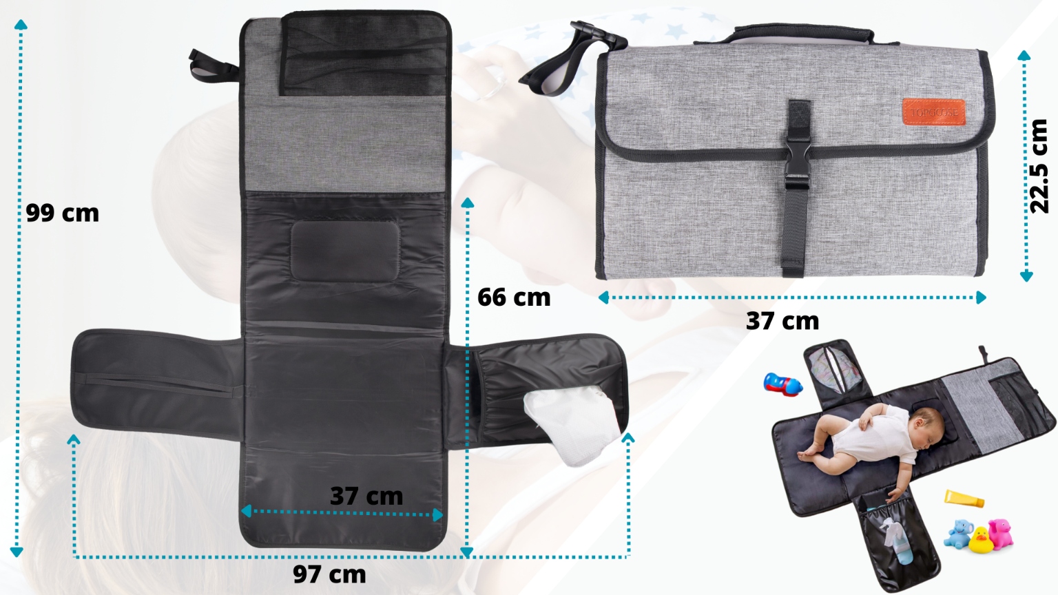 - ✅Благодаря регулируемой ручке, застегивающейся на кнопку, пеленальный столик можно прикрепить, например, к коляске, сумочке или рюкзаку. Его также можно держать в руке.