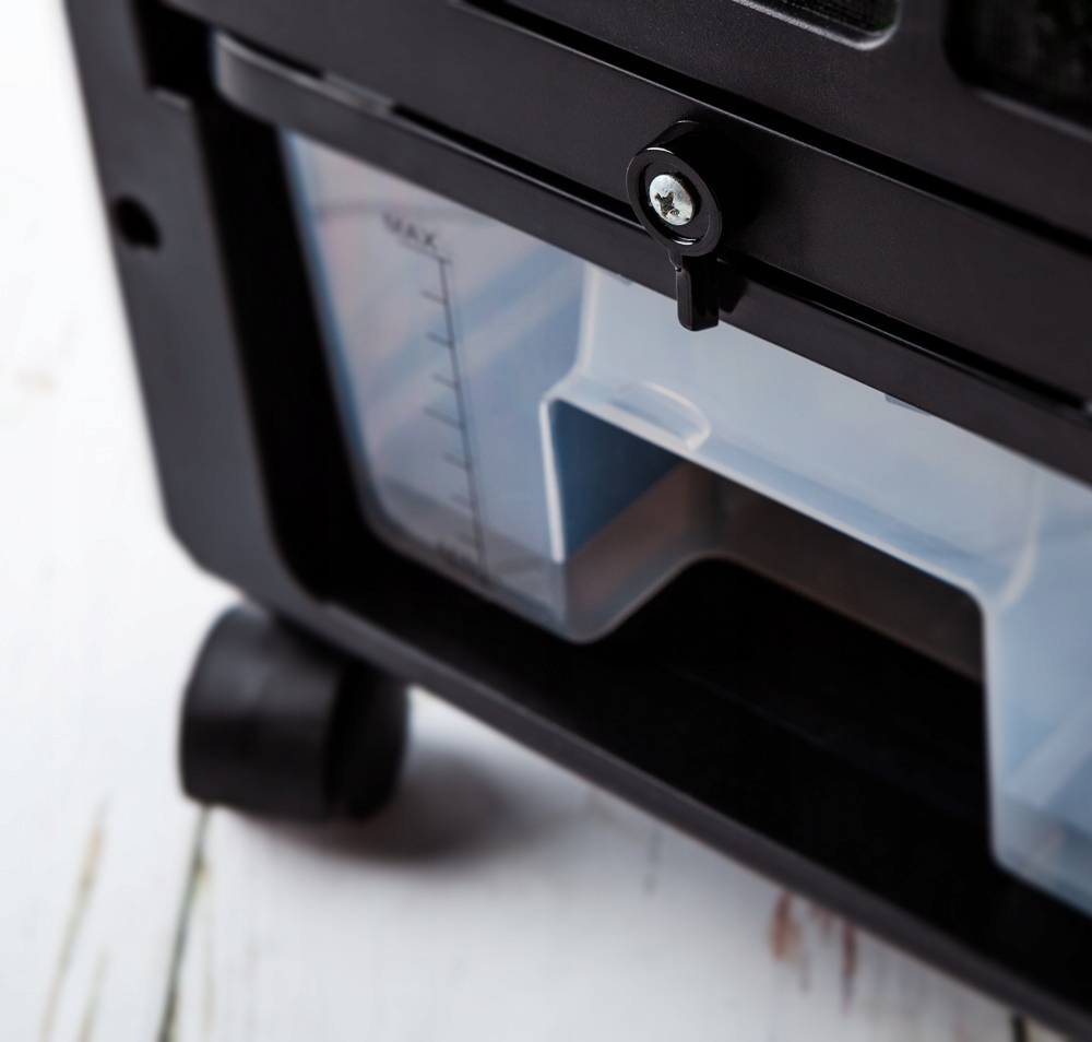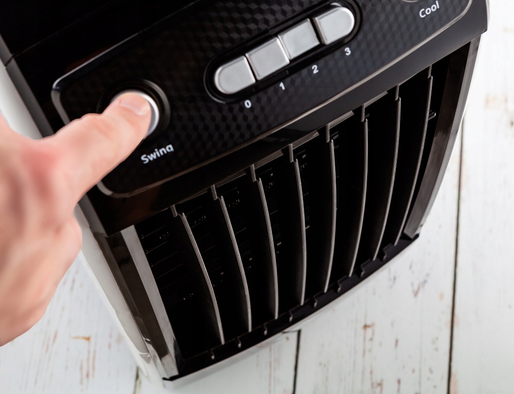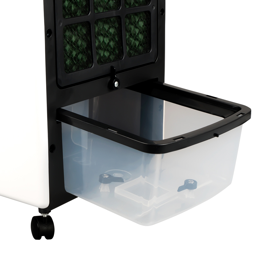 Модель КС100 проста в использовании, энергосберегающая и экологичная. Он оснащен баком для воды объемом 4 л, воздушным фильтром, удобной панелью управления и установленными поворотными колесами, которые облегчают его переноску. На выбор доступны три режима вентилятора и функция колебаний. Для управления потоком холодного воздуха также используются вертикальные и горизонтальные жалюзи. Чтобы повысить эффективность охлаждения, в резервуар для воды можно поместить замороженные вставки (наполненные водой) или кубики льда.