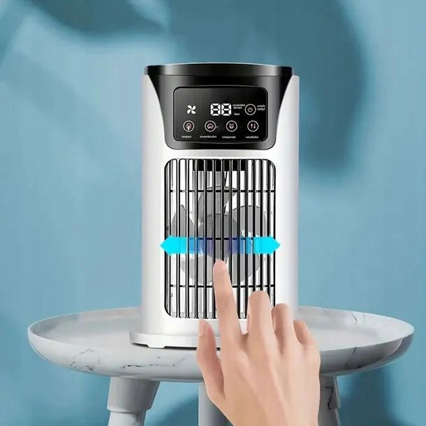 Благодаря регулированию угла передней решетки, вы можете легко установить выпускную отверстию воздуха, чтобы ваше окружение было лучше всего. Все, что вам нужно сделать, это заполнить верхний контейнер водой и нажать соответствующую кнопку, и устройство не только охлаждает комнату, но и увлажняет воздух