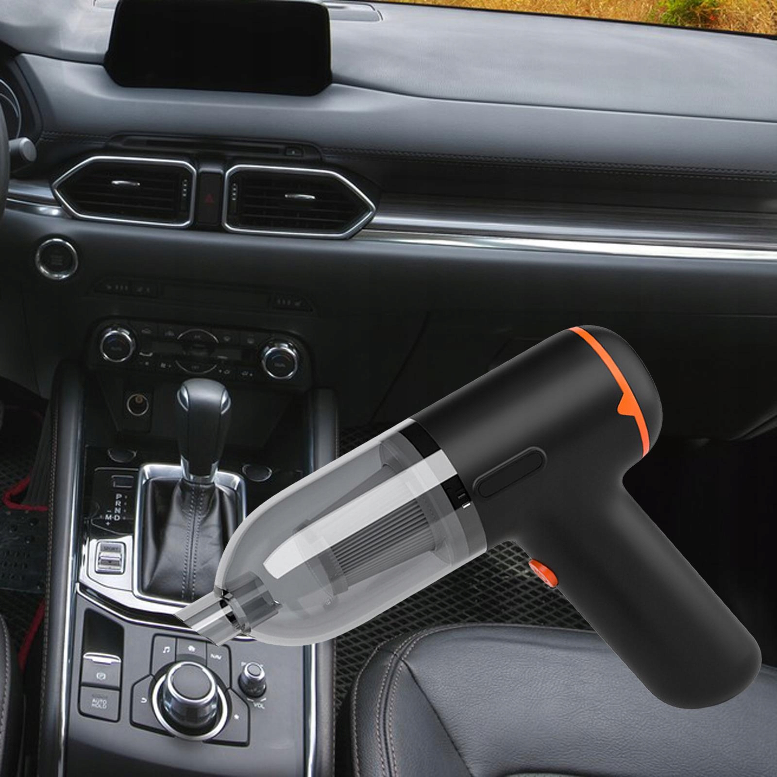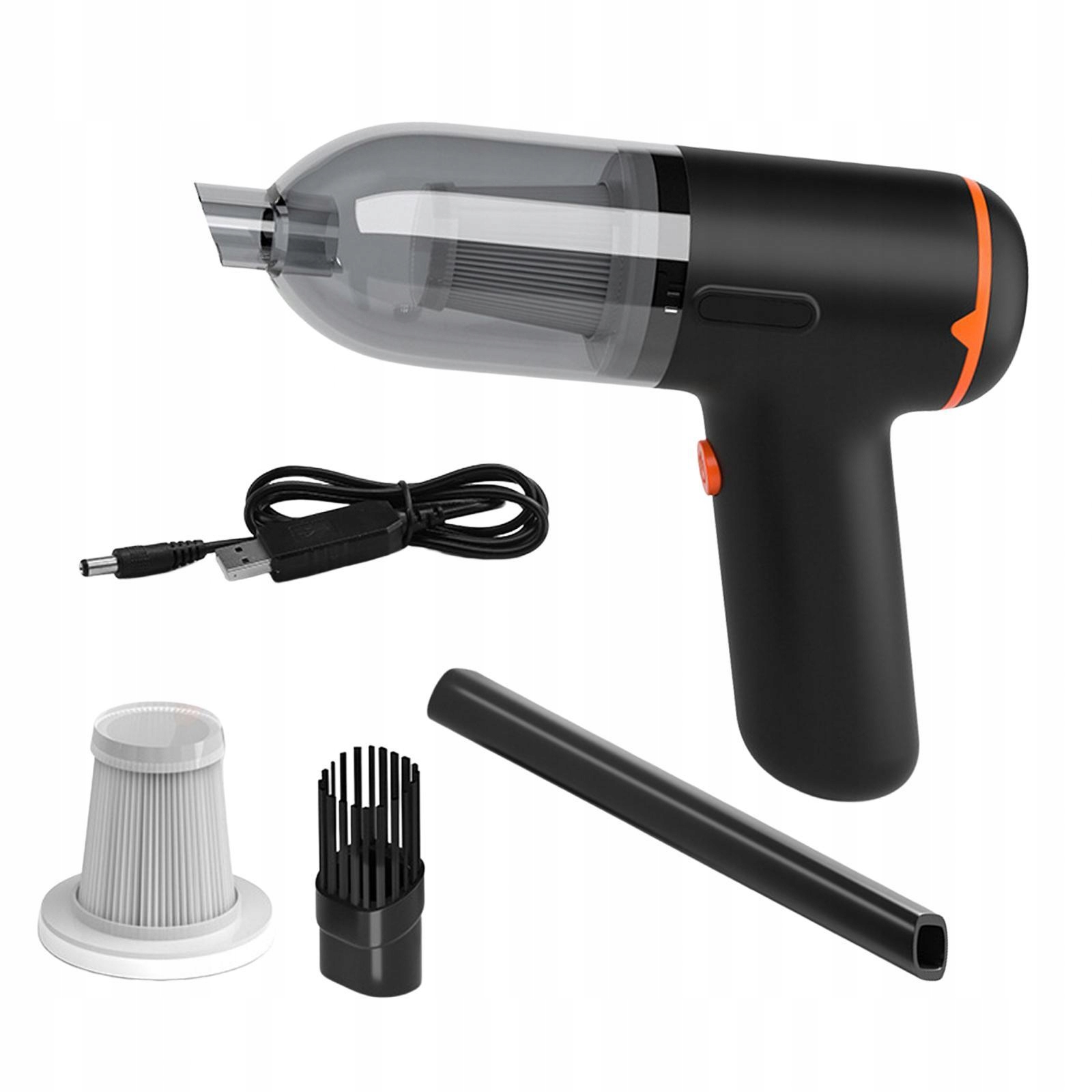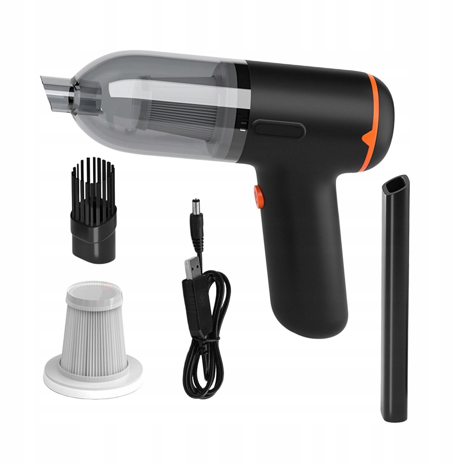 Портативный мини -автомобильный вакуумный очиститель Сильный сосание подушек на столе в черном и оранжевом