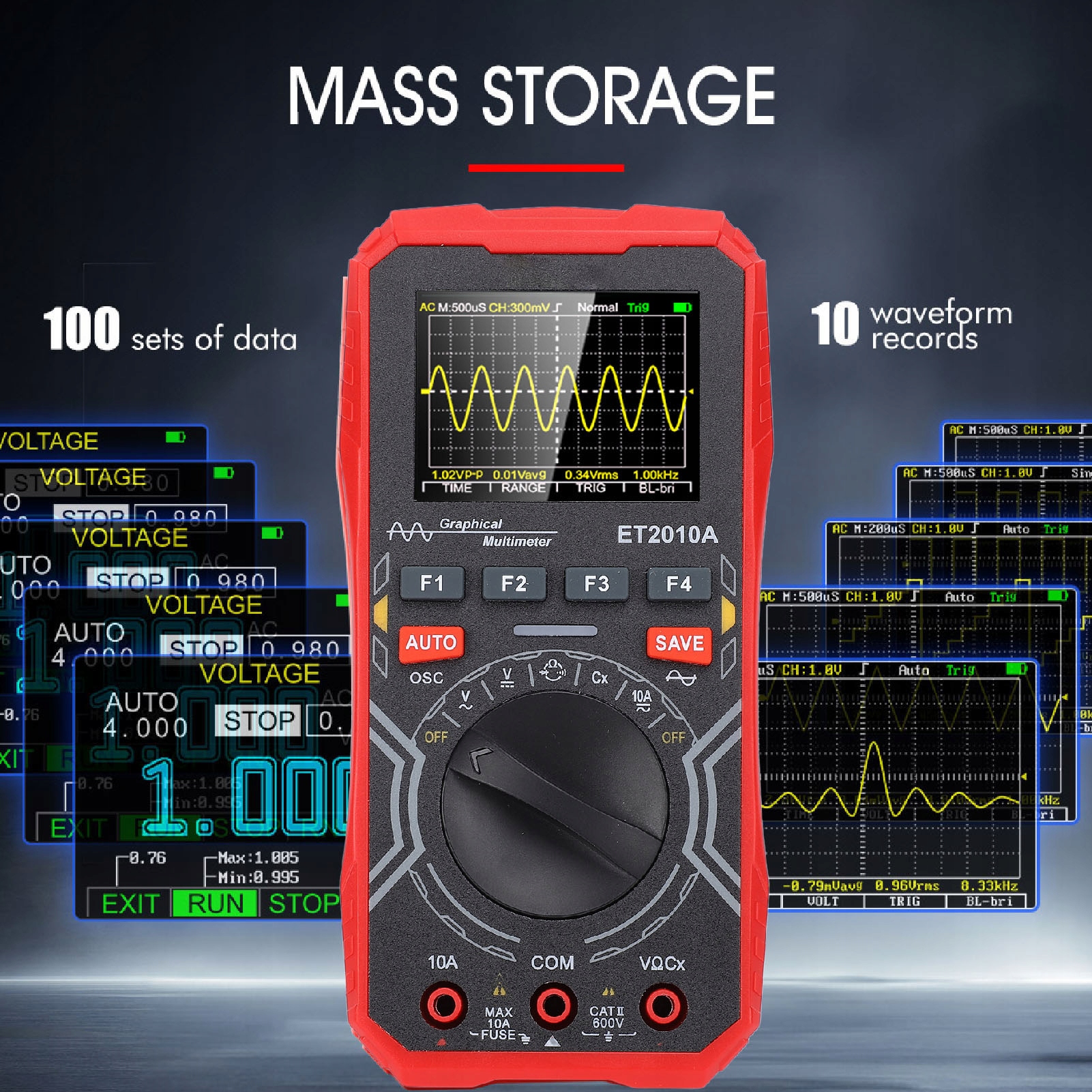 2. 3 режима запуска: Оснащенный тремя режимами запуска: автоматическим, нормальным и одиночным, для точного контроля регистрации сигналов, осциллограф и мультиметр 2-в-1 упрощают работу благодаря функции автоматического захвата, облегчая быстрый анализ и устранение неполадок. Универсальная конструкция включает в себя регулируемую временную развертку, амплитуду, функции хранения данных и автоматического перехода в режим ожидания для повышения удобства использования.