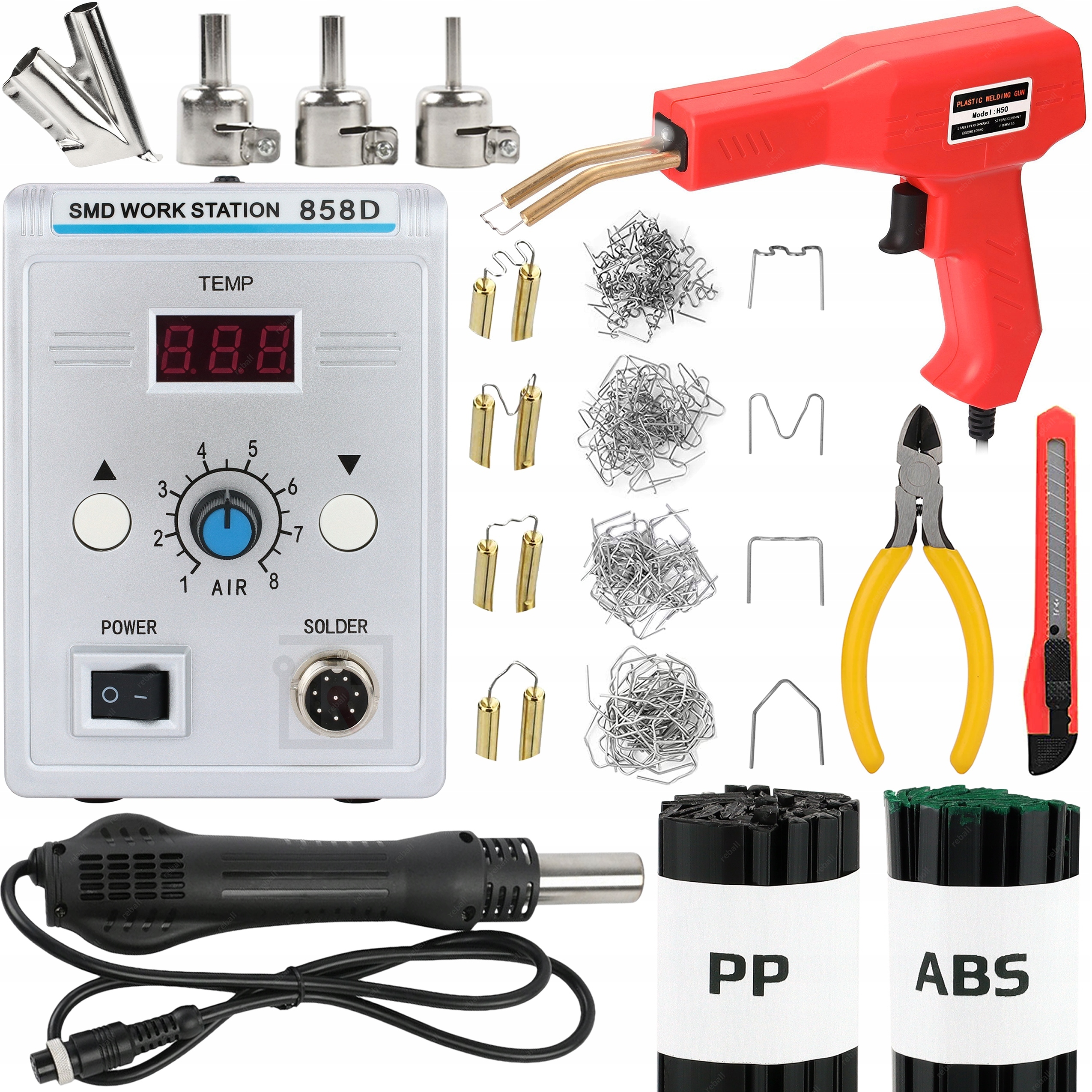 НАБОР ПАЯЛЬНОЙ СТАНЦИИ HOTAIR 858D, ПЛАСТИКОВЫЙ СТЕПЛЕР H50 + АКСЕССУАРЫ
