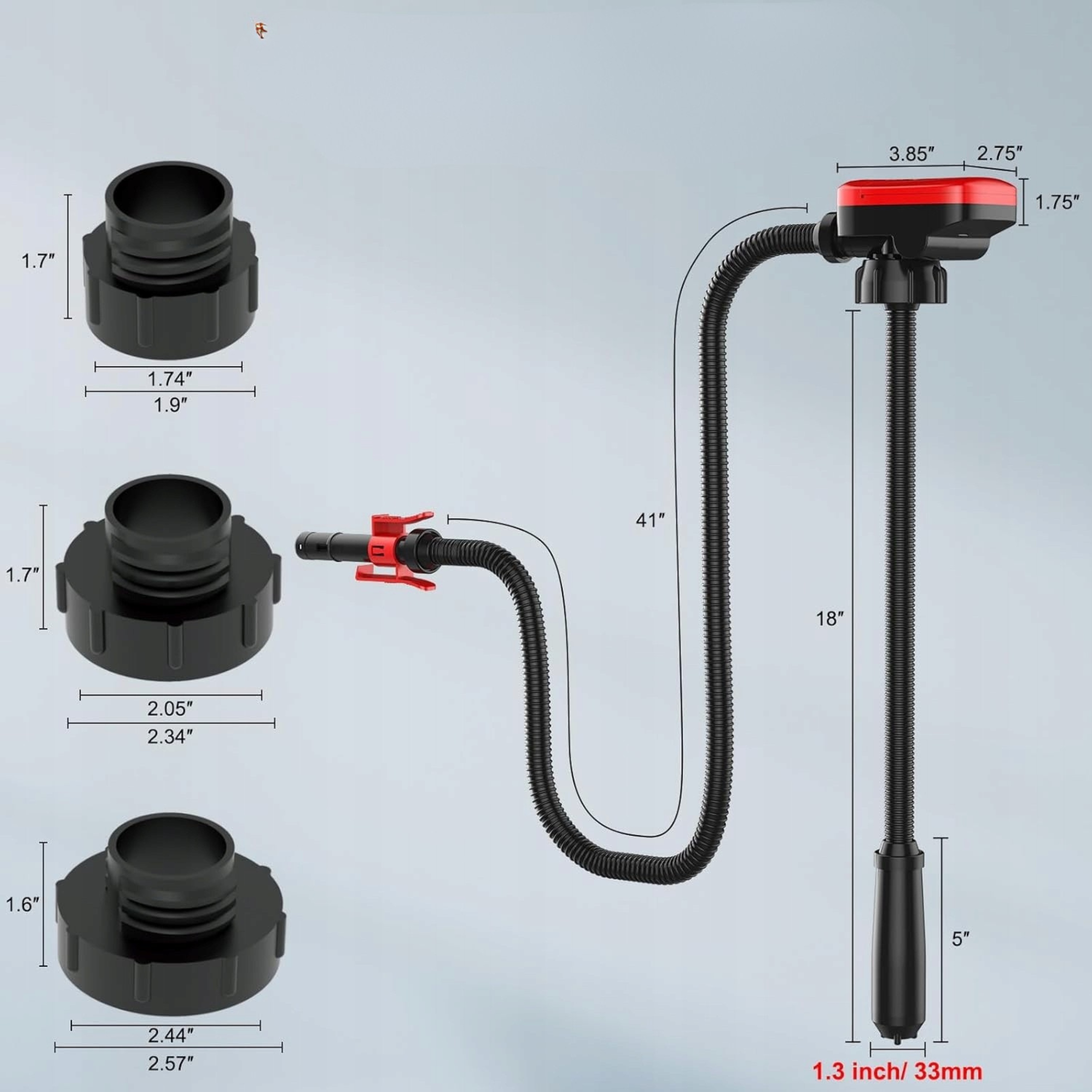 ➯ Гибкий шланг с адаптером трех размеров позволяет работать в труднодоступных местах.