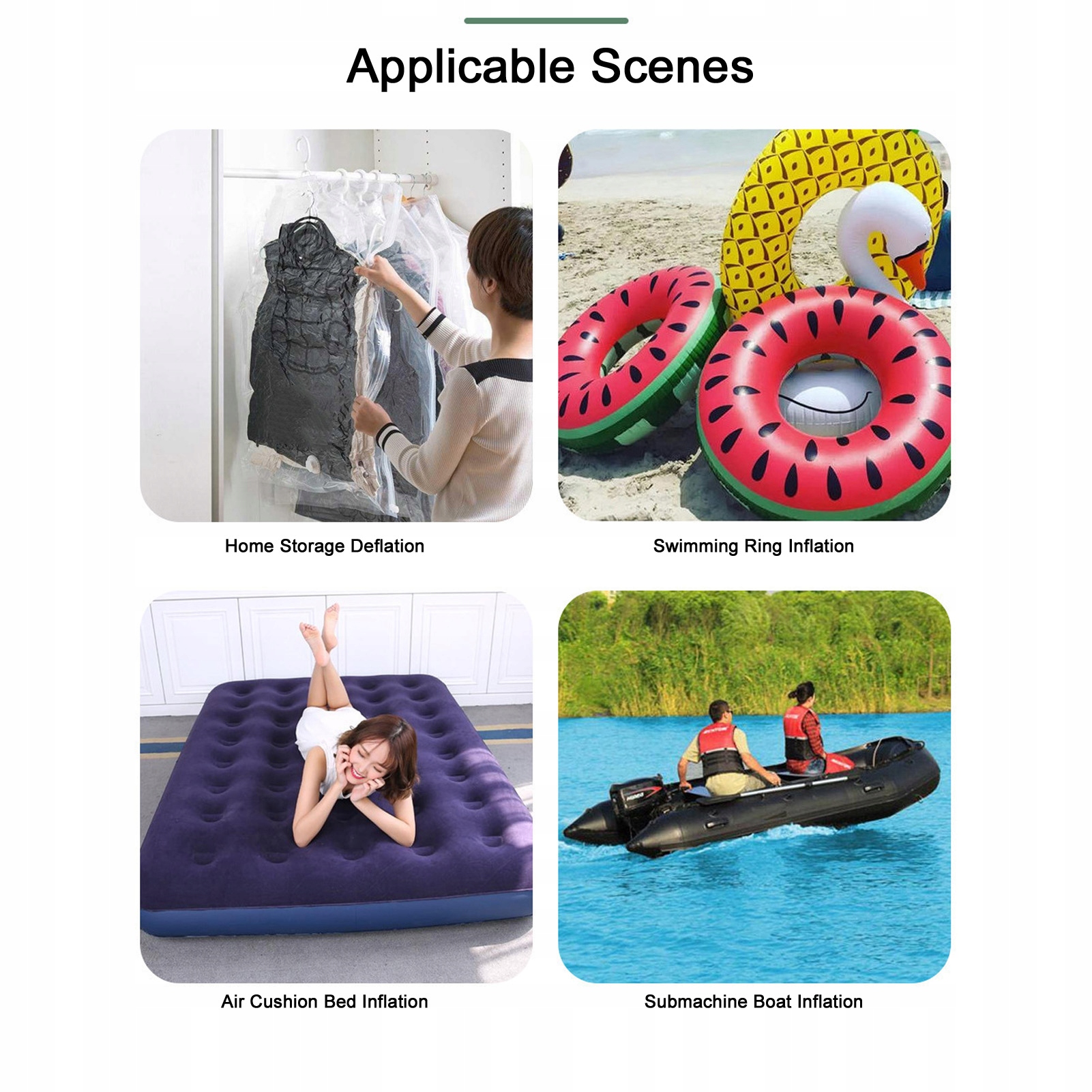 3. Универсальные аксессуары: в наборе различных форсунок и адаптеров, обеспечивая совместимость с широким спектром объектов, таких как воздушные кровати, плавающие кольца и надувные игрушки, удовлетворяющие различные потребности
