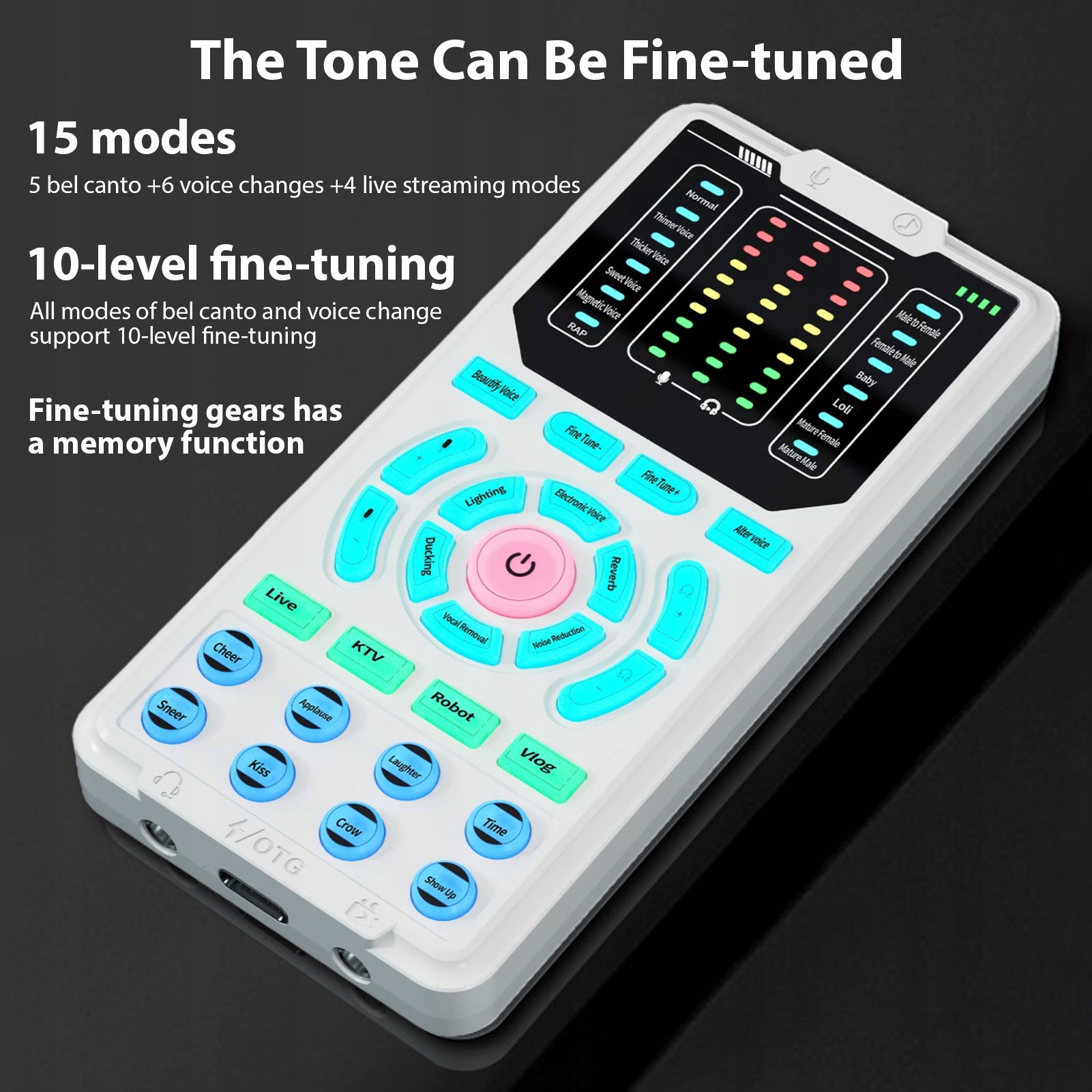 3. Интуитивно понятные элементы управления и функция памяти: легко отрегулируйте свои звуковые оттиски с 10 уровнями регулировки точности. Интуитивно понятный дизайн звуковой платы содержит световой дисплей, который показывает текущую настройку, обеспечивая автоматически сохраненные изменения для предпочтительных настроек голоса.