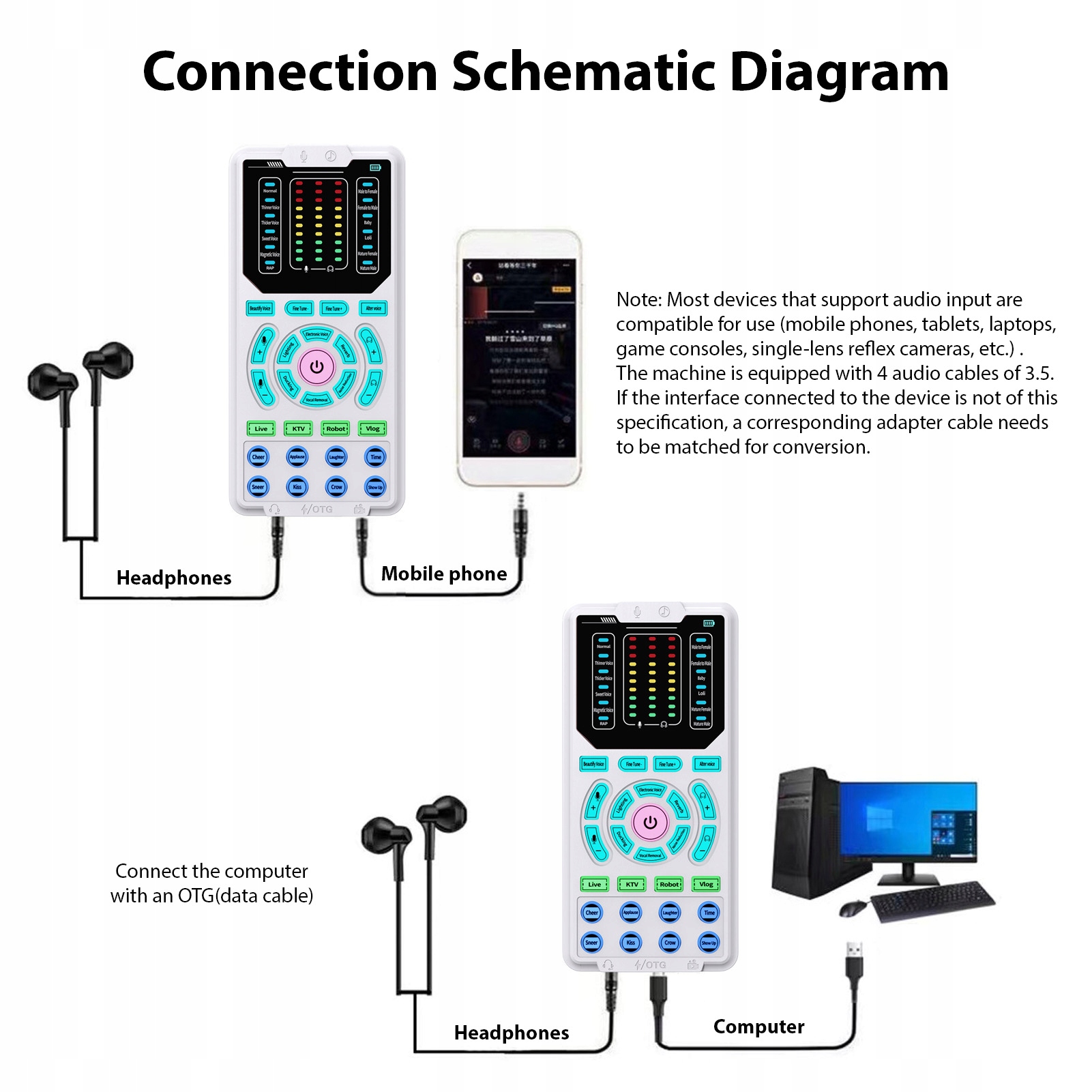 4. Улучшение живых потоков: эта универсальная машина звука эффекта служит компаньоном в прямом эфире, обеспечивая немедленное переключение между магнитными голосами и причудливым преобразованием. Без особых усилий привлечь получателей и без усилий поднимите атмосферу ваших потоковых сессий!