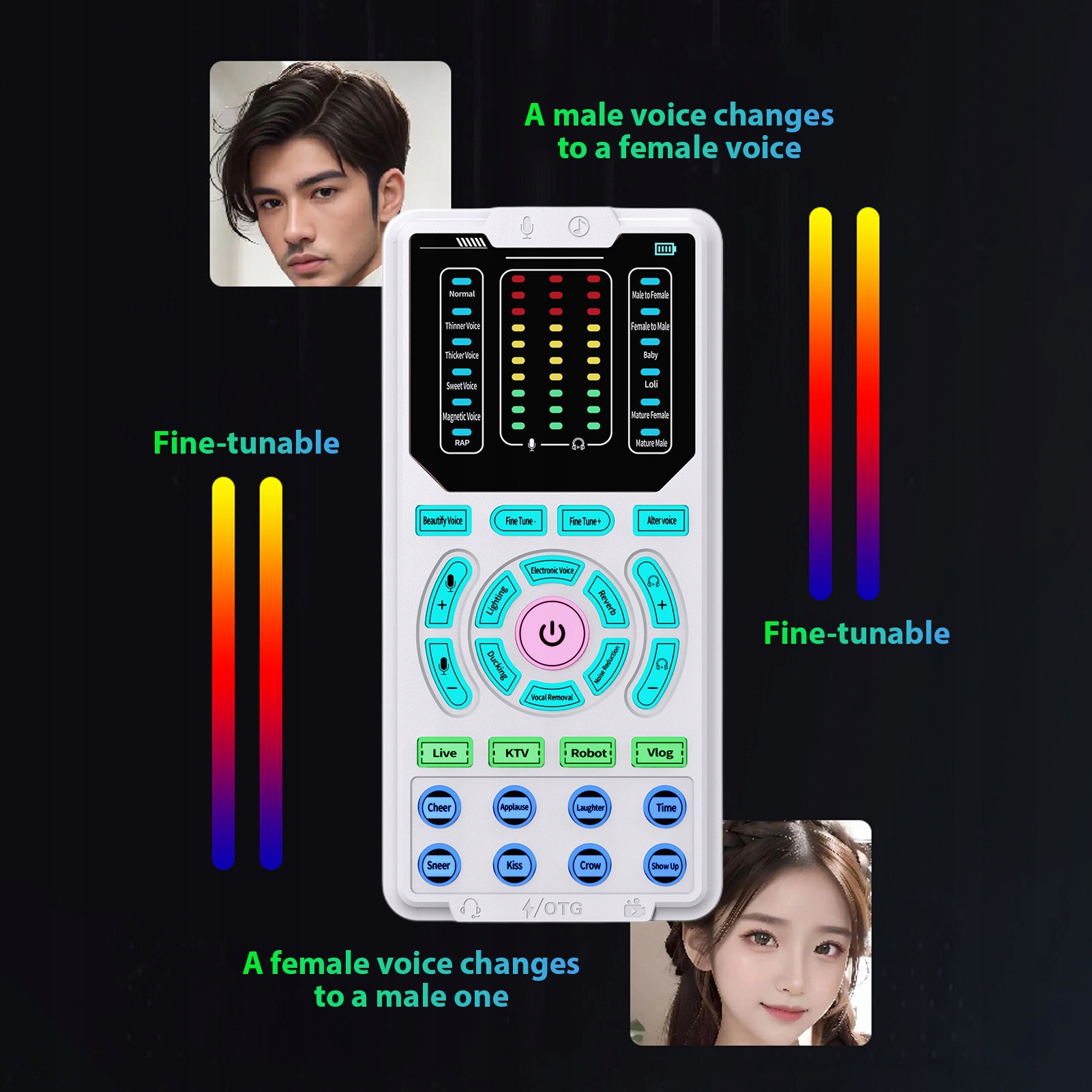 4. Улучшение прямых трансляций: эта универсальная машина со звуковыми эффектами служит дополнением к вашим прямым трансляциям, позволяя мгновенно переключаться между магнитными голосами и диковинными трансформациями. Легко привлекайте аудиторию и повышайте качество своих стриминговых сессий!