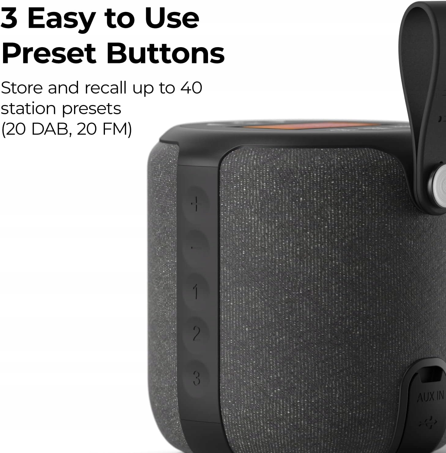- Питание аккумулятора: питание с использованием прикрепленного кабеля USB Type C (штекер не прикреплен) или используйте встроенную литиевую батарею 2000 мАч, чтобы насладиться путешествием до 10 часов после одного заряда, идеально подходит для использования дома или путешествия. Компактная конструкция и удобная петля для переноски, благодаря которой это идеальное портативное радио в саду или на рабочем месте.