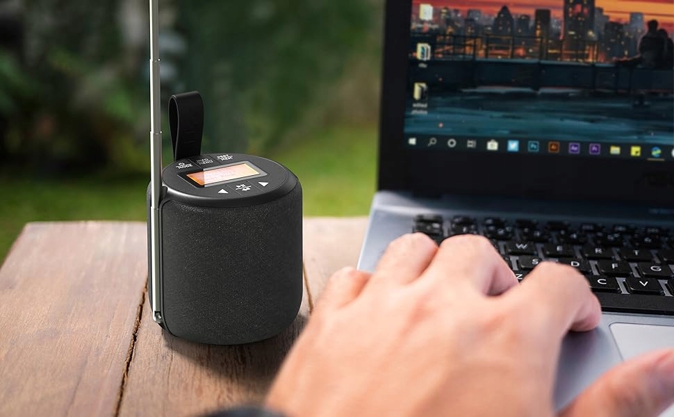 - Устойчивость к воде IPX4: Радио -бочонка имеет тактильную резиновую отделку и тканевую раму, а также имеет защиту от всплеска, благодаря которой он является идеальным выбором для ванной/душевого радио, а также у бассейна или на пляже. Отлично для многих дней его компактный размер не займет много места в багаже благодаря телескопической антенне, которая тщательно адаптируется к устройству.