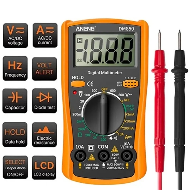 Портативный цифровой ЖК-мультиметр, тестер диодов переменного/постоянного тока, измеритель сопротивления току, амперметр, мультитестер с тестовым щупом