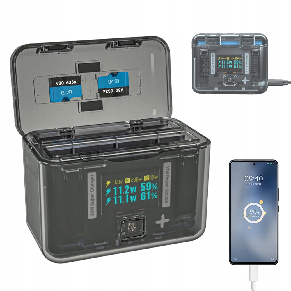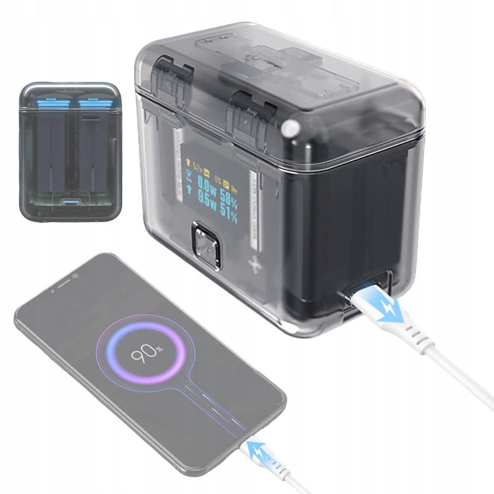 Интеллектуальное зарядное устройство 3-в-1, двухканальная станция быстрой зарядки, мобильный преобразователь питания и органайзер для аккумуляторов 3-в-1