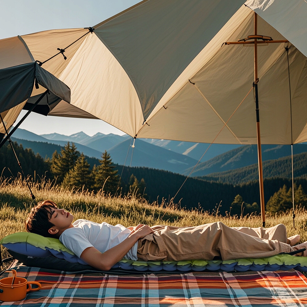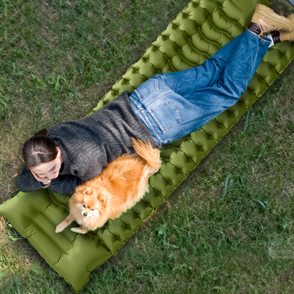 nylon 40d и супер удобный: коврик для кемпинга, изготовленный из 40d нейлона, и внутреннее уплотнение покрытия ТПУ, долговечное, долговечное, не ломается и легко чистить. Эргономичный дизайн обеспечивает хороший ночной сон даже в трудных внешних условиях.