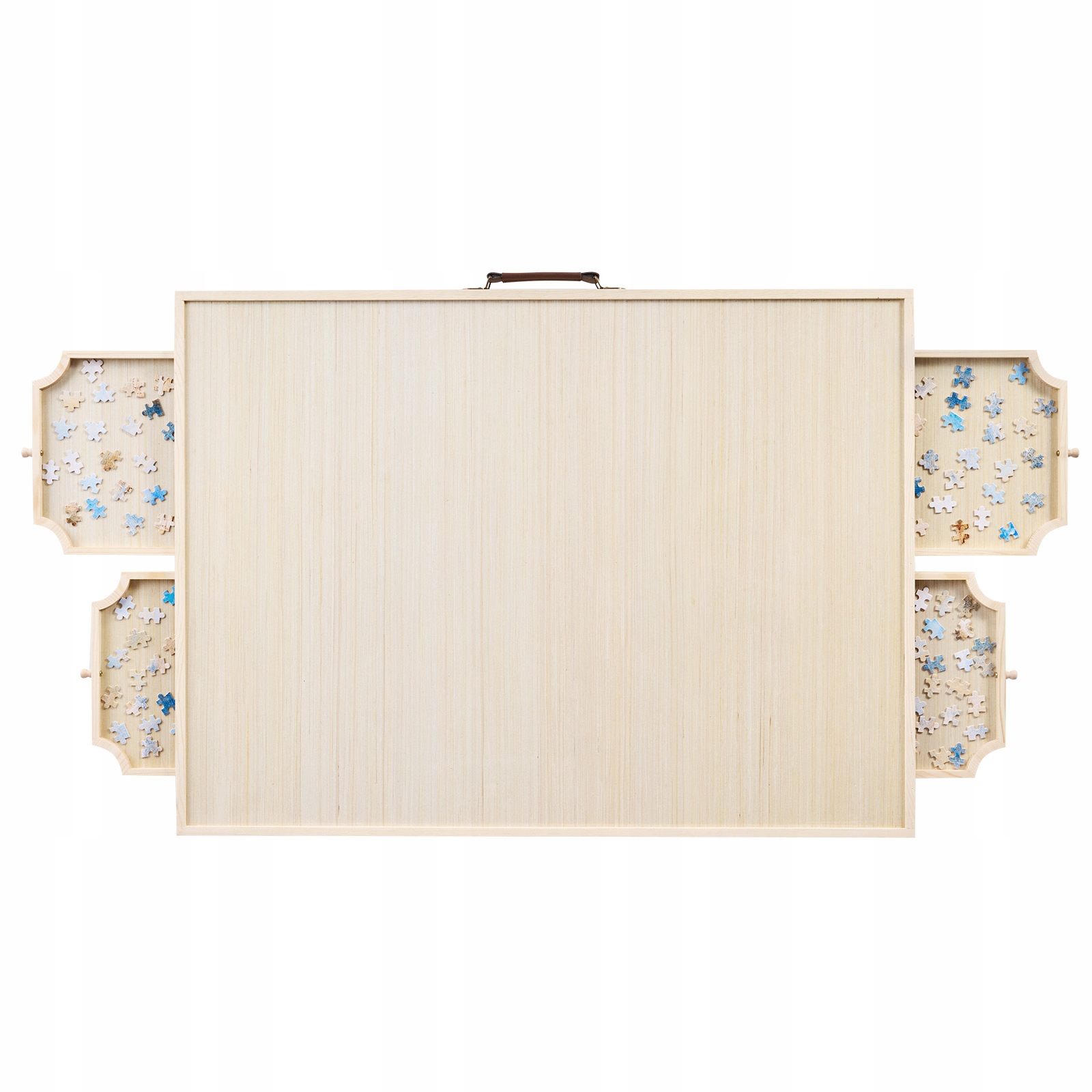 Высококачественный материал: стол для пазлов изготовлен из натуральной сосновой древесины, прочный и долговечный. Гладкая поверхность облегчает перемещение головоломки. Четырехсторонний край предотвращает падение головоломки.