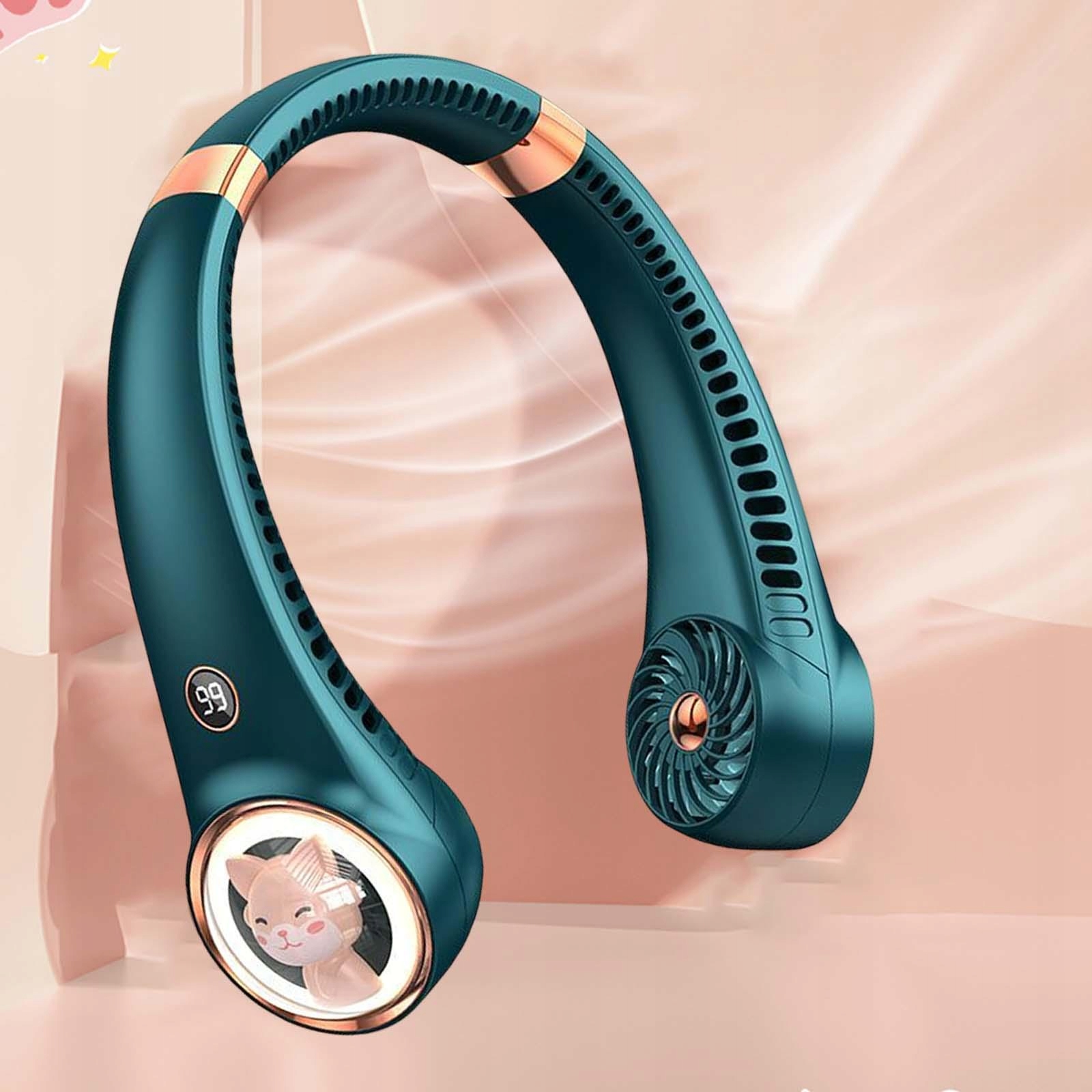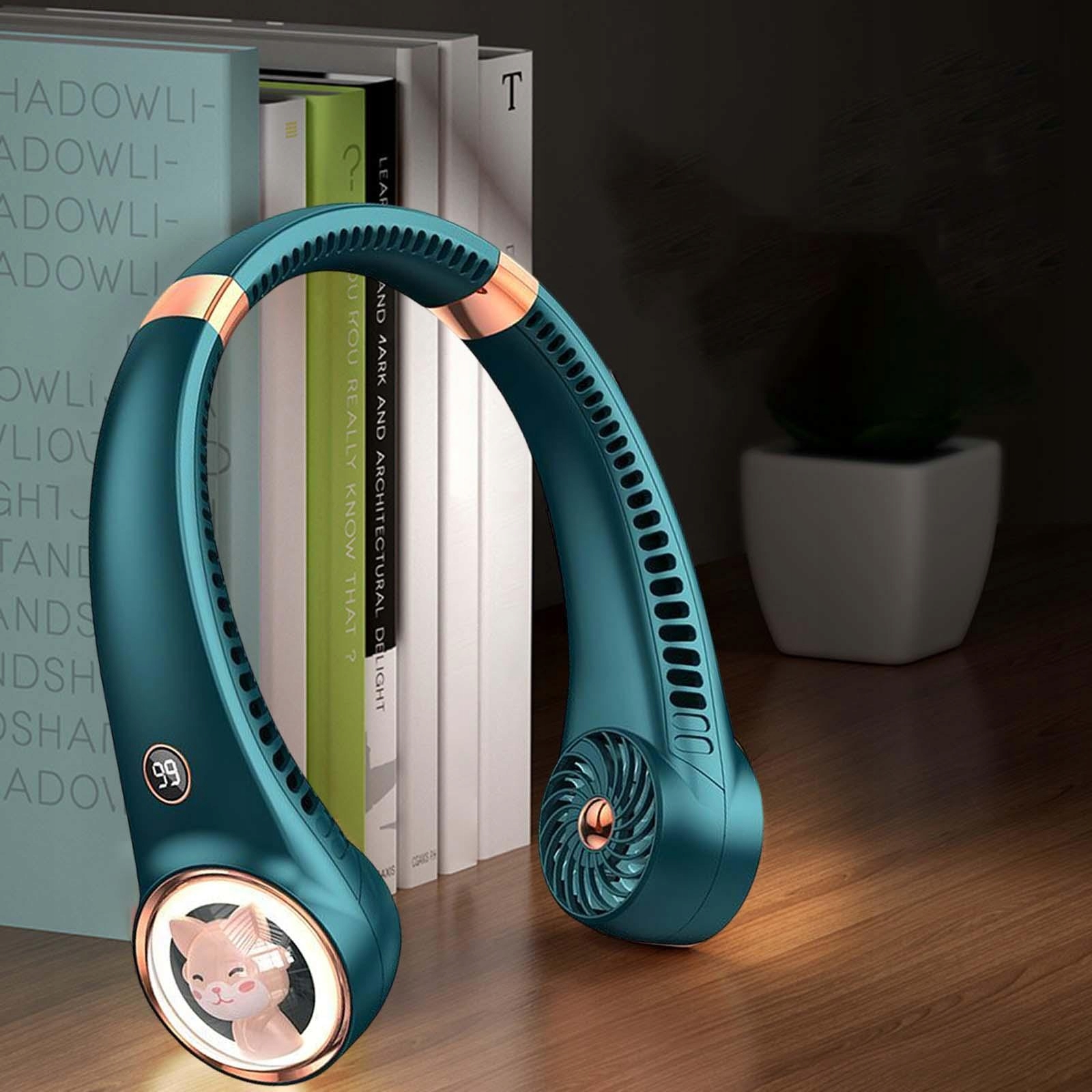 Портативный вентилятор шеи, батарея, изношенная, нагруженная, зеленая