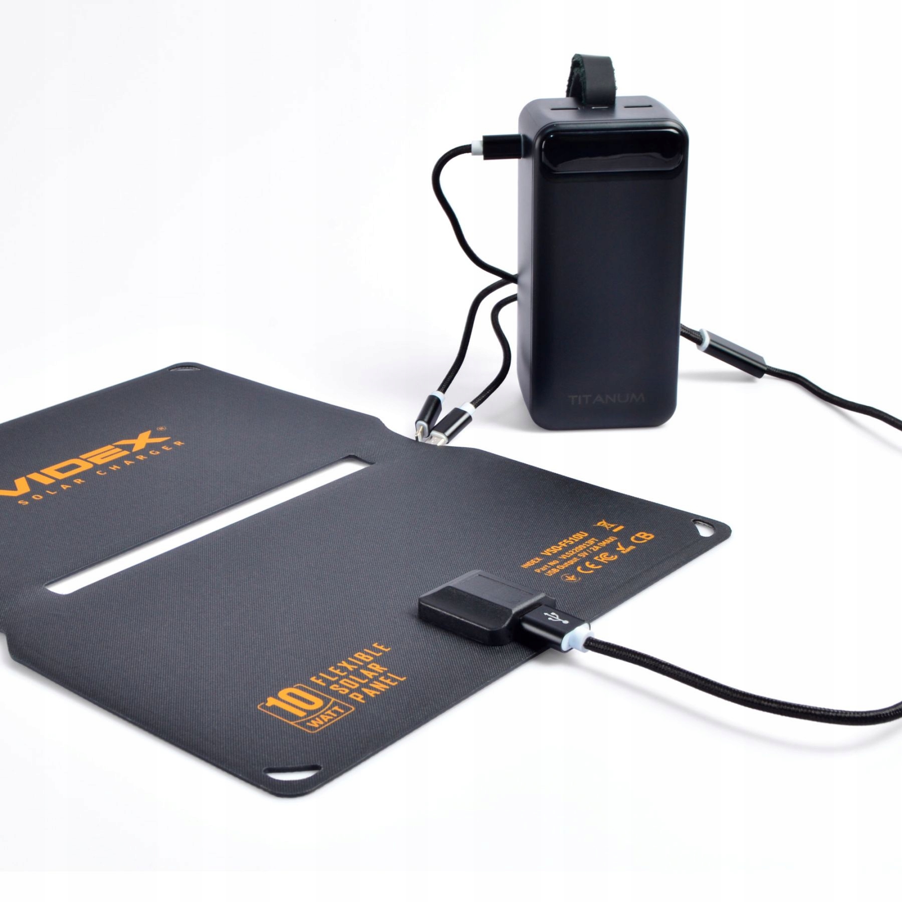 ✔ В комплект входит USB длиной 1 м с различными выходами (Type-C, Micro USB, Lightning) для зарядки гаджетов, а также два карабина для удобного крепления панели