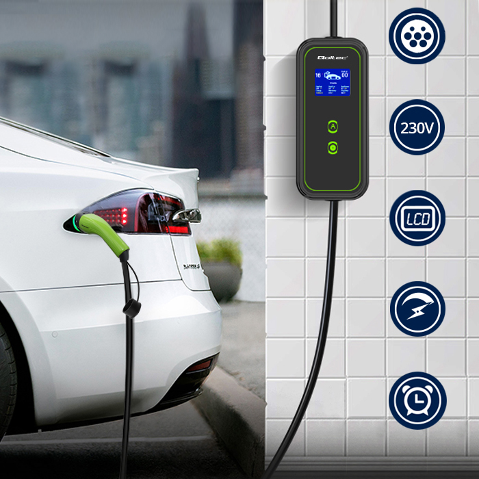✅ Qoltec Mobile EV Электрическое зарядное устройство с 2IN1 Type2 Regulation2 | 3,5 кВт | 230 В | Wi-Fi | ЖК -дисплей Портативный Стенка 5m