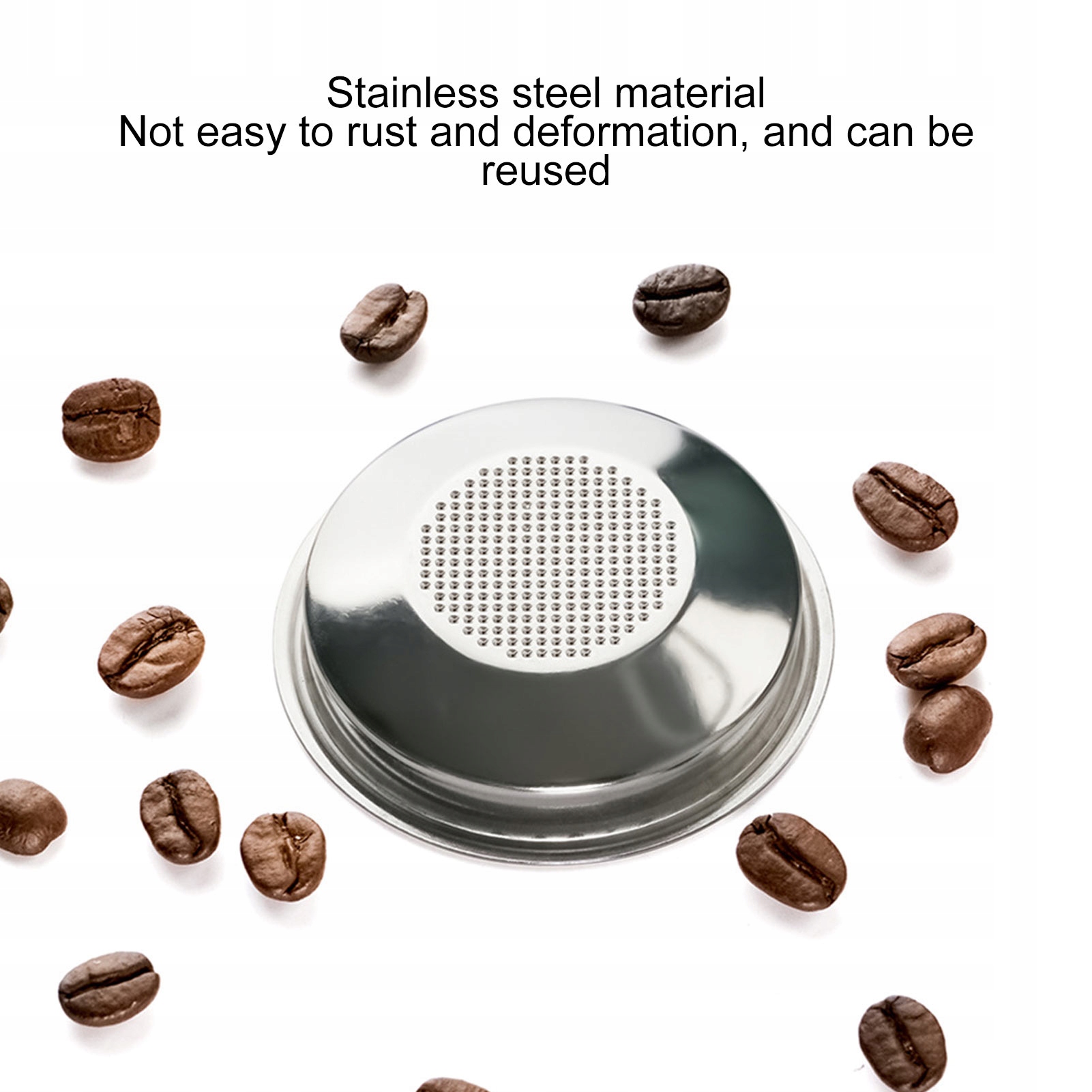 Особенность:1. Нержавеющая сталь: эта корзина для портафильтра из нержавеющей стали устойчива к ржавчине, деформируется и может использоваться повторно, ее легко чистить даже после длительного использования.