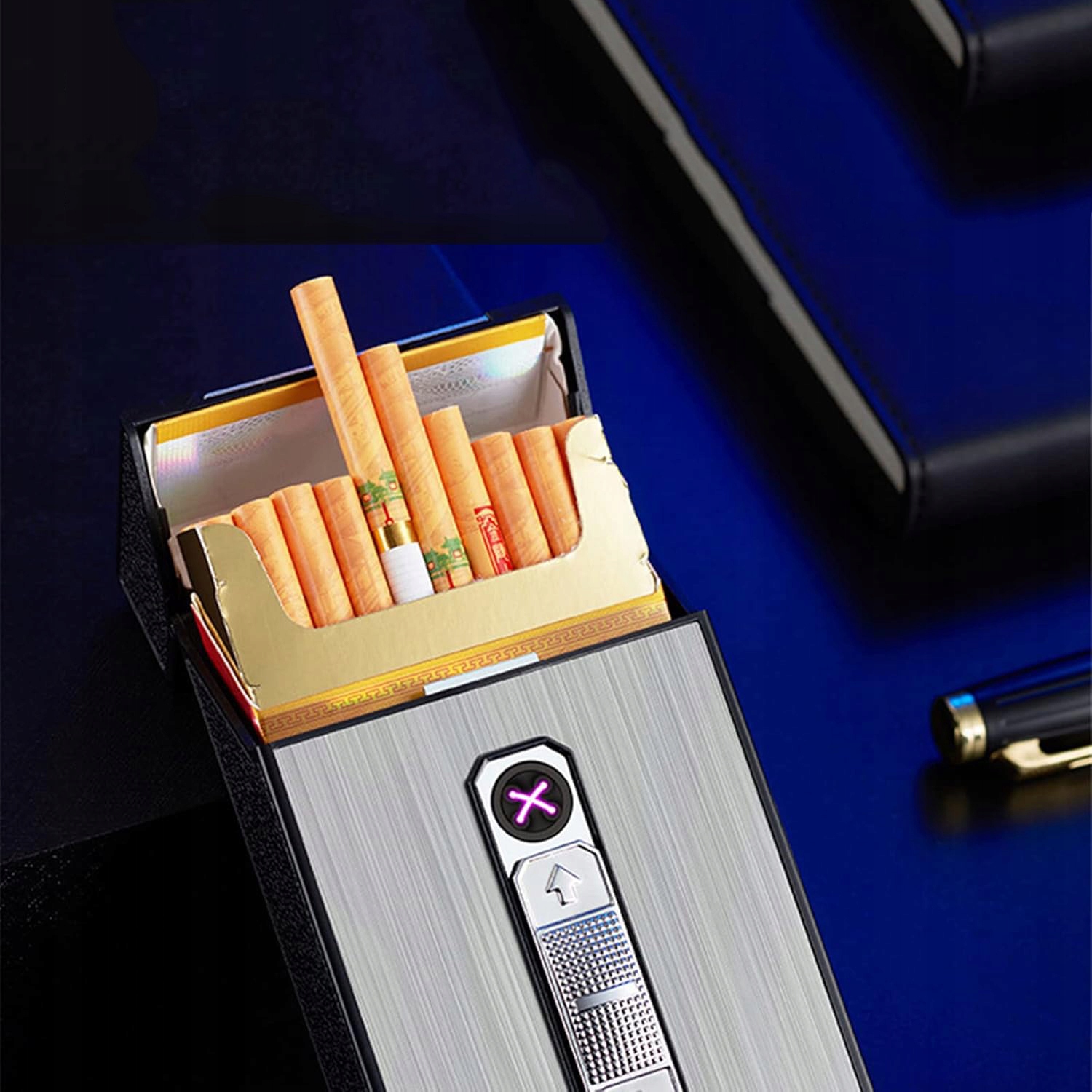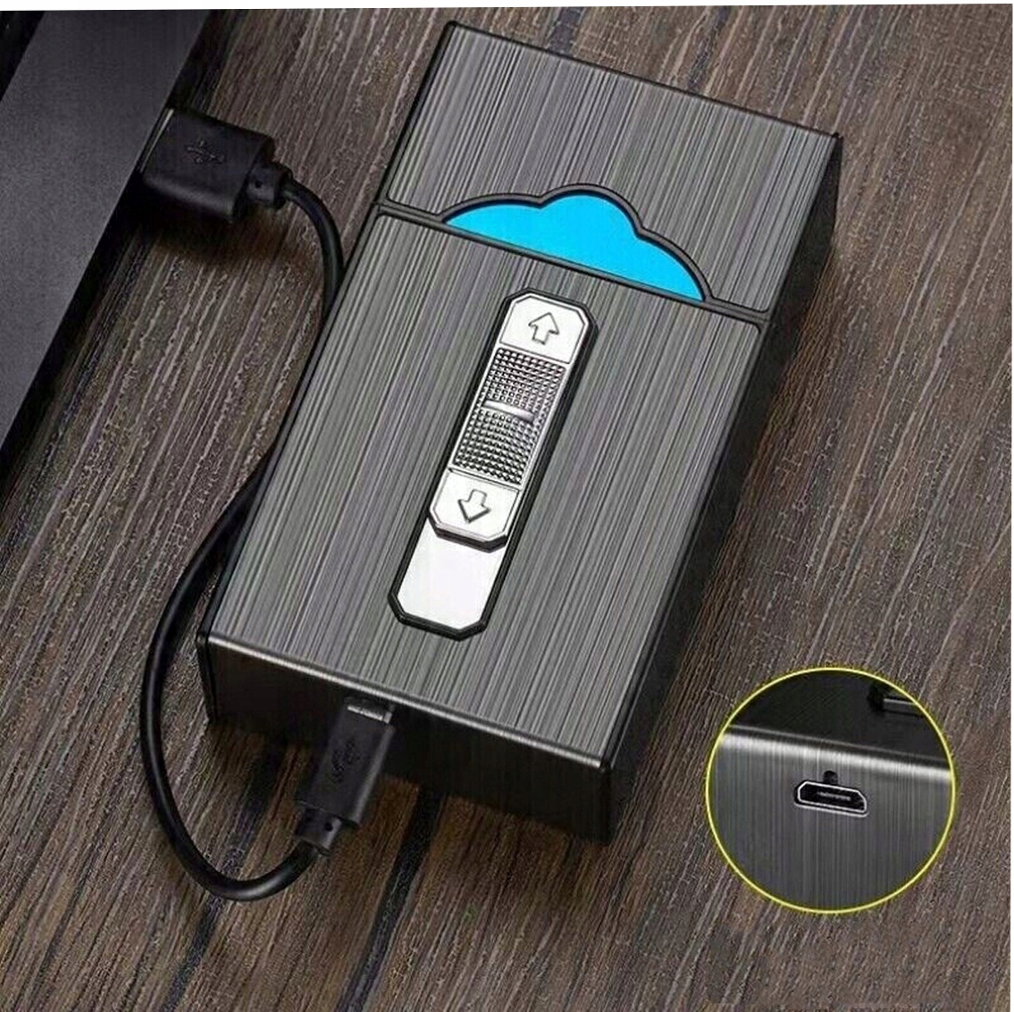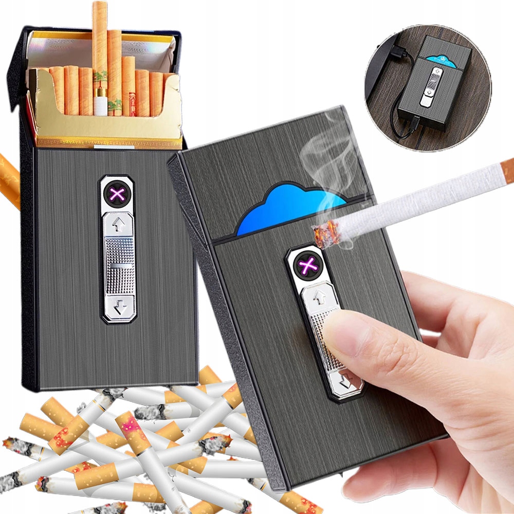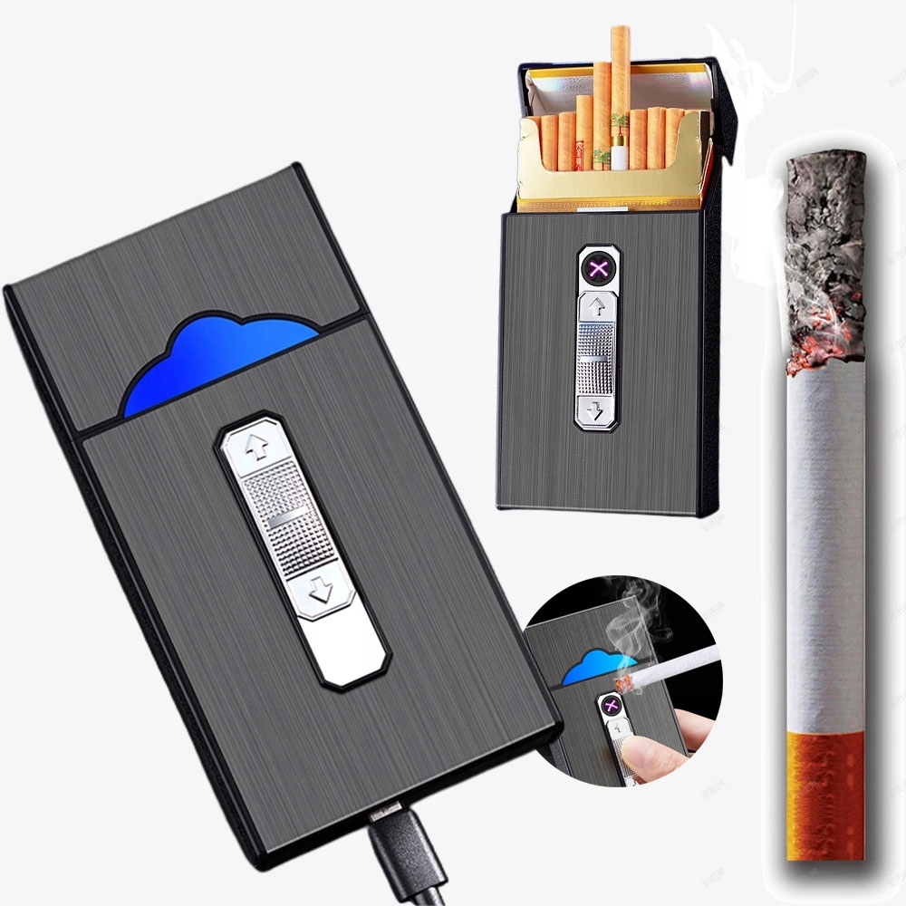 🚬🚬🚬【Портсигар-зажигалка】Портсигар вмещает целую пачку сигарет, без необходимости складывать их по отдельности, как в случае с другими портсигарами, что очень удобно в использовании. В верхней части портсигара находится небольшая USB-зажигалка, которую можно заряжать с помощью прилагаемого USB-кабеля.