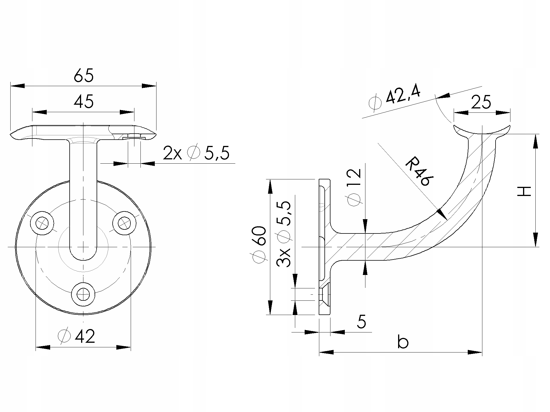 КРОНШТЕЙН НАСТЕННОГО ПЕРИЛА 75-50 FI 42.2 СОЕДИНЕНИЕ С МОНТАЖНЫМИ ОТВЕРСТИЯМИ - НЕРЖАВЕЮЩАЯ СТАЛЬ AISI 304 SATIN