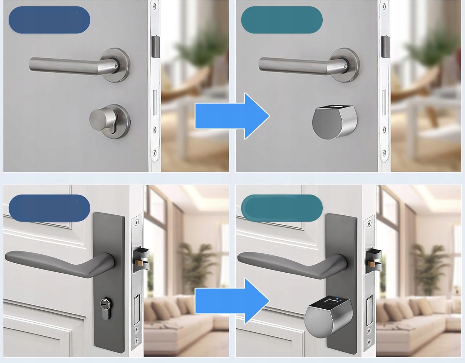 Простая установка: интеллектуальный замок заменяет ручку механического цилиндра и может быть установлен без сверления или прокладки кабелей, что упрощает модернизацию — существующее оборудование остается нетронутым. В комплекте: электронный дверной замок x1, ключ x2, отвертка x1, руководство пользователя x1.