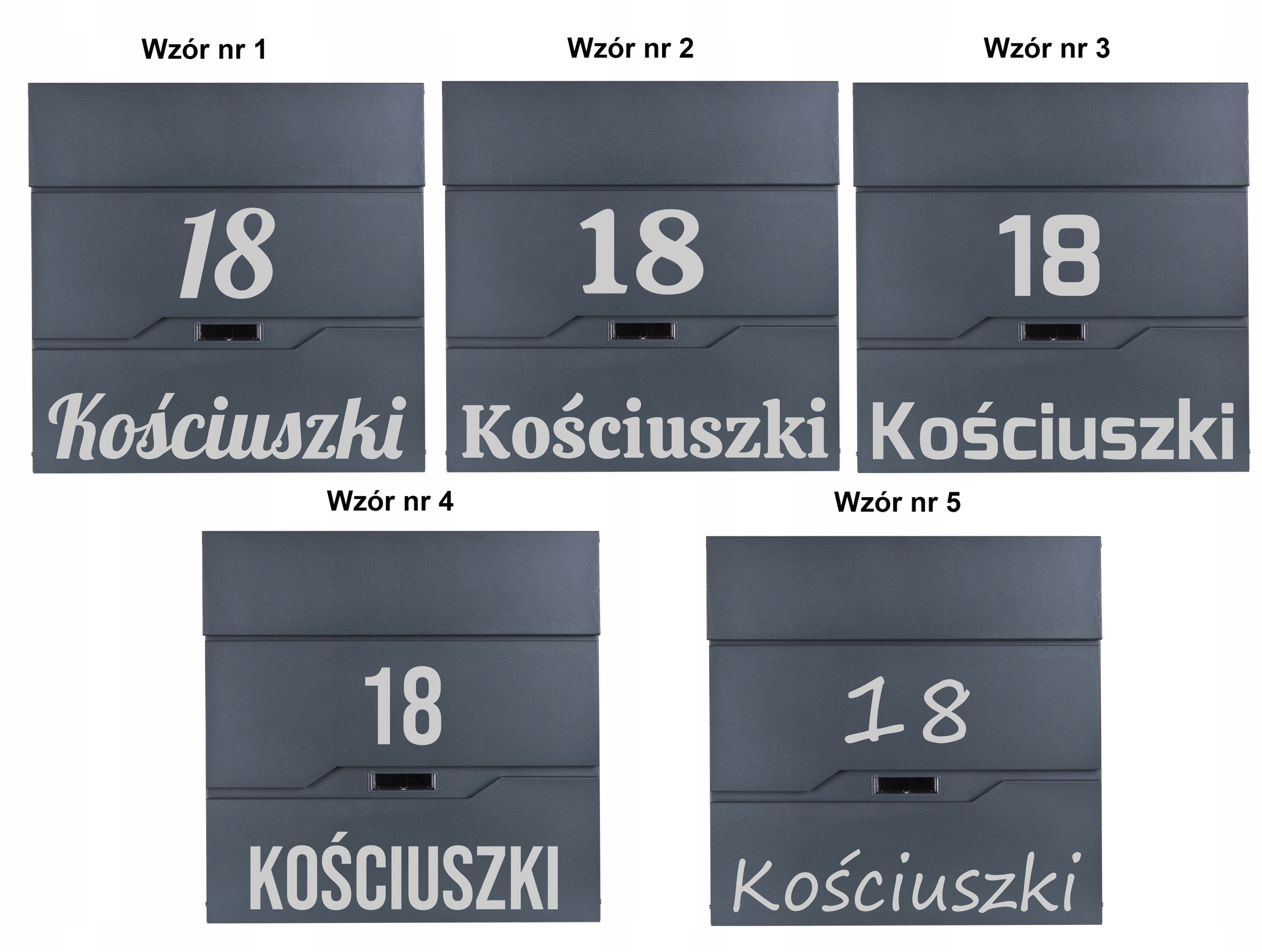 При совершении покупки укажите в сообщении продавцу: выбранный дизайн шрифта, надпись, которую необходимо сделать. (пример: узор № 2, Костюшко 18). Надпись будет сделана точно по инструкции в сообщении продавцу. Надписи могут состоять только из прописных букв, например «KOŚCIUSZKI», или строчных букв, например «cicha». Исключением является узор № 4, шрифт которого состоит только из заглавных букв. Если надпись делать с сокращением улицы «ул. тогда, пожалуйста, предоставьте и эту информацию. Допускаются польские символы (например, ę,ą,ć,ś и т. д.).
