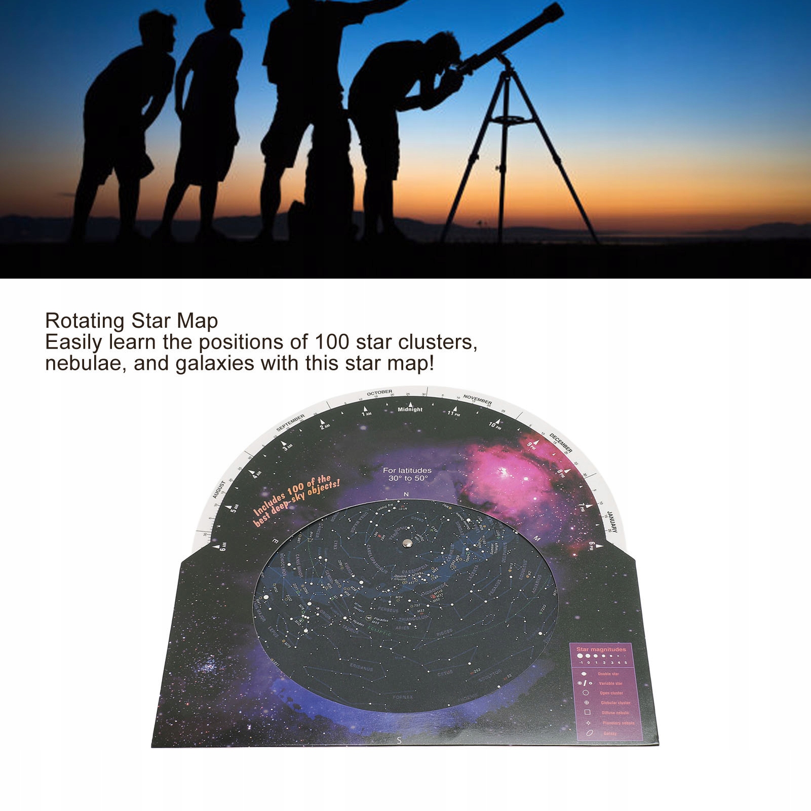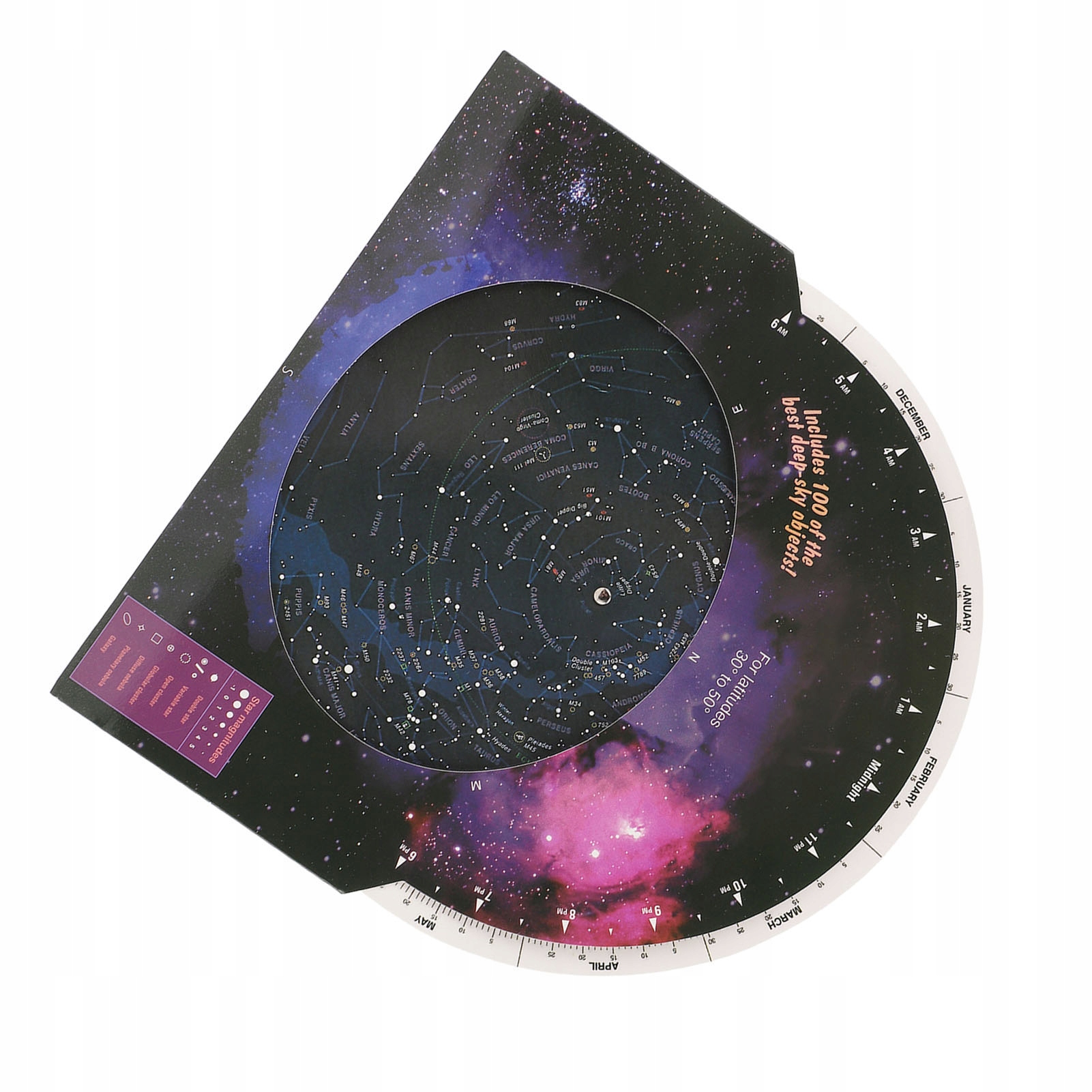 5. Образовательный инструмент: Звездная карта отображает расположение 100 звездных скоплений, туманностей и галактик. Это идеальный помощник при наблюдении небесных тел в телескоп или бинокль.
