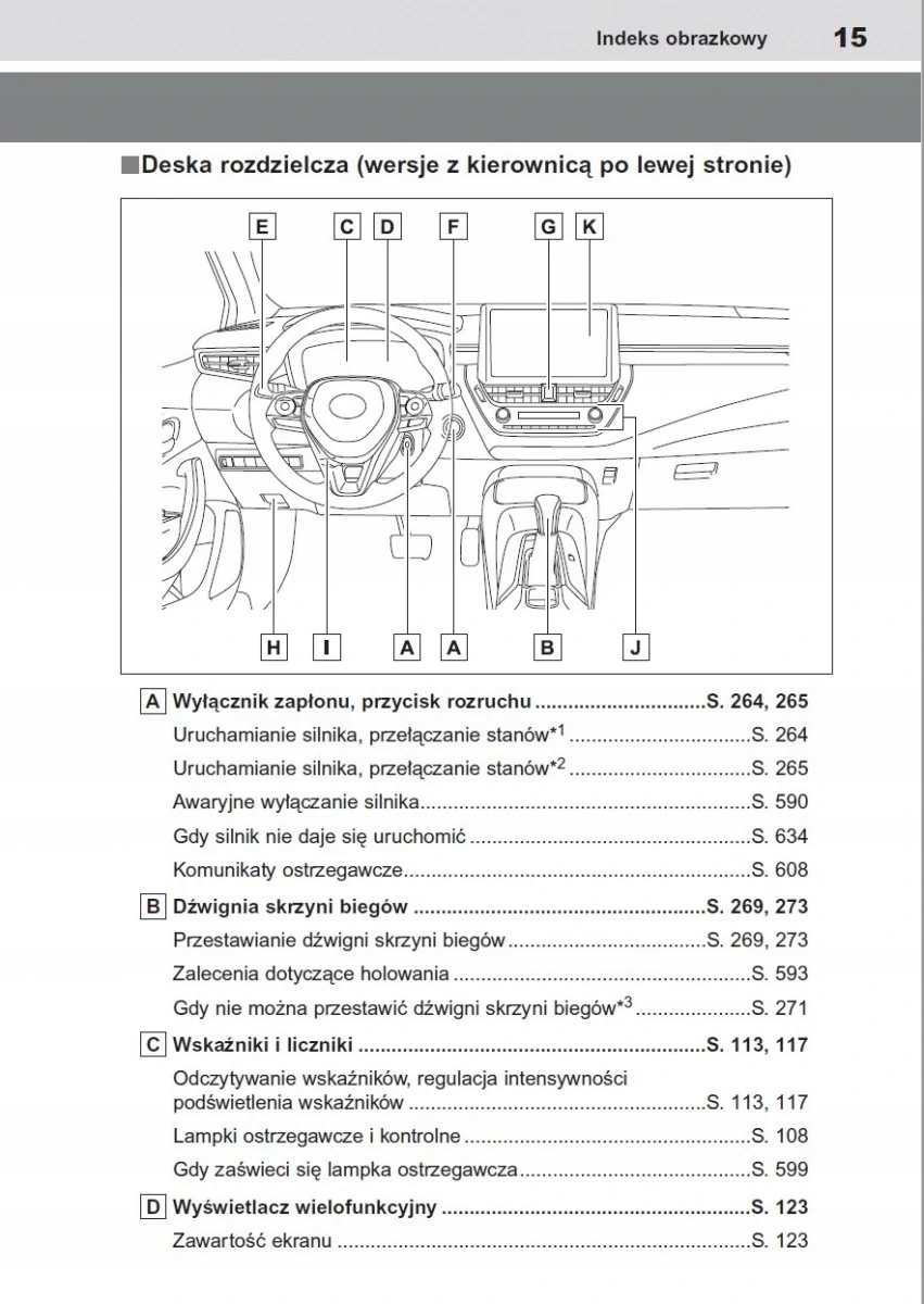 Руководство владельца Toyota содержит все версии оборудования и полезную информацию о том, как эффективно и безопасно использовать автомобиль, например: - указатели поворота, контрольные лампы открытия и закрытия - освещение и обзорность, сиденья, отсеки для хранения вещей, отопление, вентиляция, кондиционирование воздуха. - советы по вождению, эксплуатации, обслуживанию автомобиля - уровни жидкостей, проверка и доливка, аварийные операции, замена колес, предохранителей, замена лампочек - технические данные... и многое другое, что дает путешественникам ощущение безопасности и комфорта.Польское законодательство обязывает продавца приложить к . Руководство пользователя автомобиля новое, на польском языке.