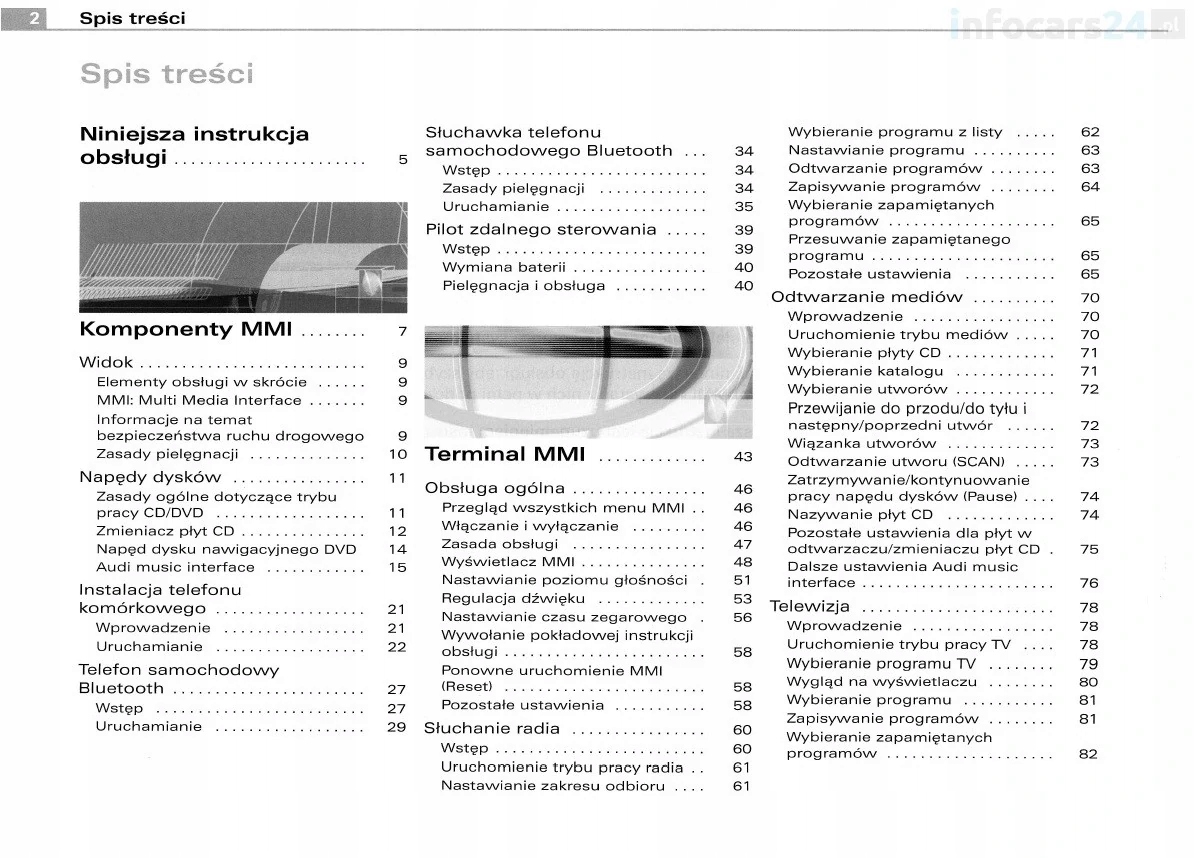 Содержит описание магнитолы, навигации, Bluetooth, CD, многофункционального руля, телефона и многих других интересных возможностей MMI