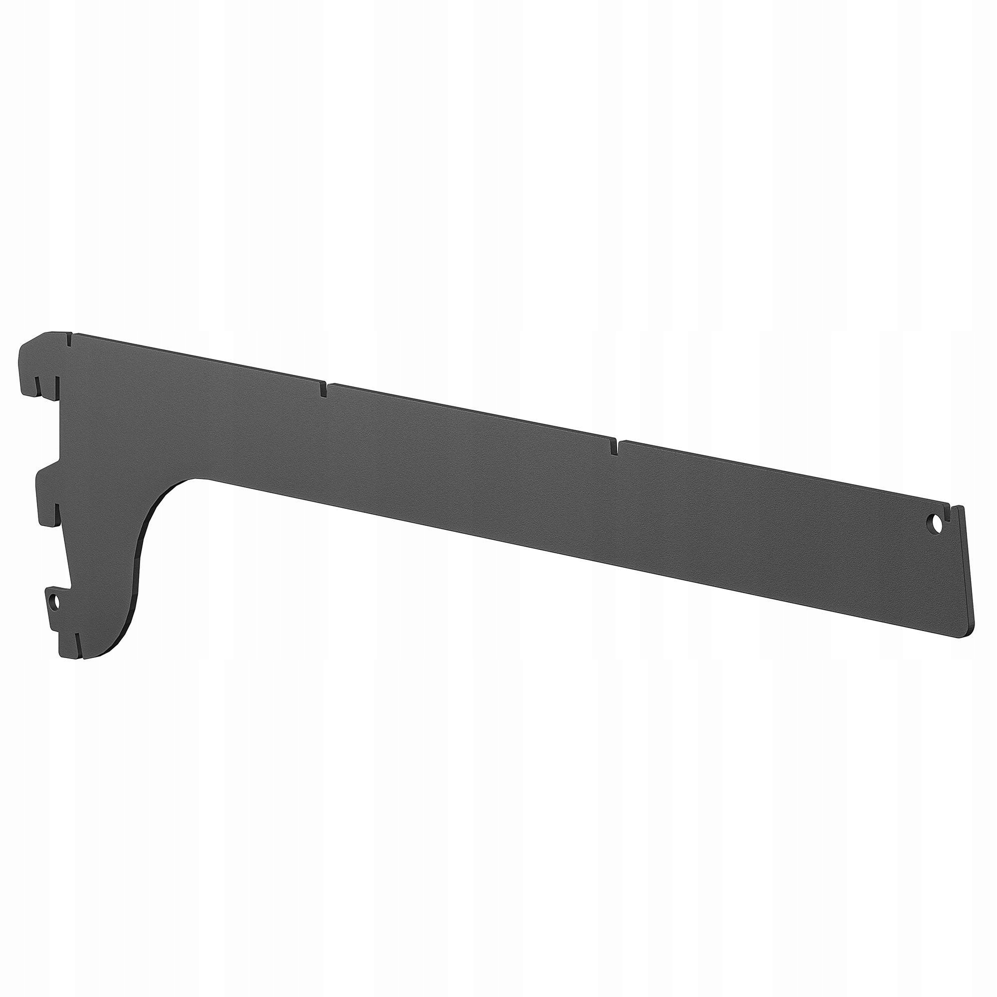 Элемент конструкции длиной 491 мм, служащий опорой для 3-х сегментов полки, края которого должны располагаться в специальных пазах. Кронштейн крепится в перфорации вертикальных стоек с помощью трех крючков на конце (в стандартной версии их два). Крючки позволяют соединить опору и кронштейн двумя способами – под углом 90 и 75 градусов.