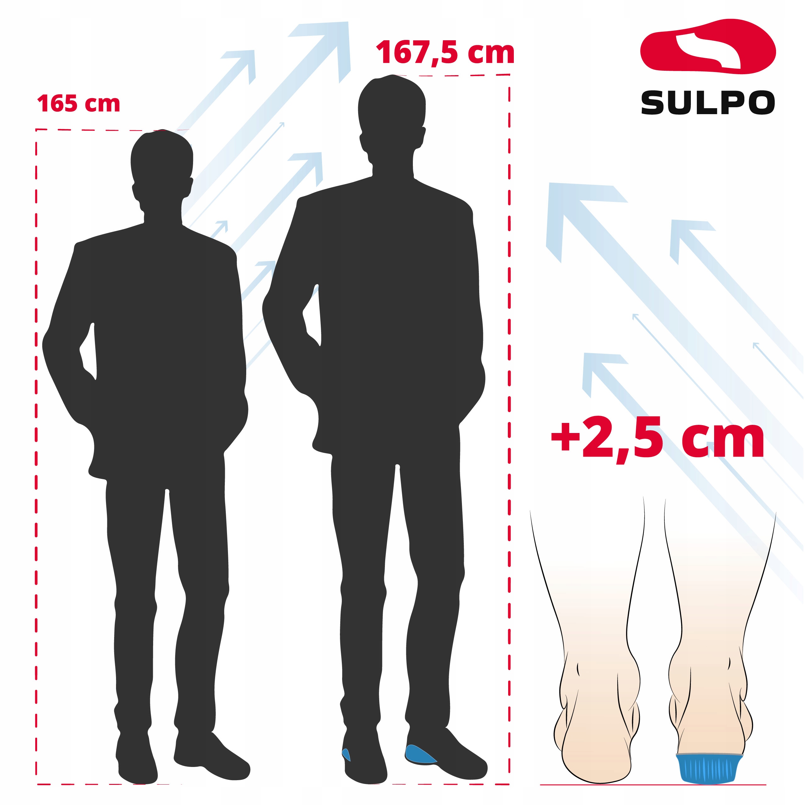Каблук увеличивается на 2,5 см.